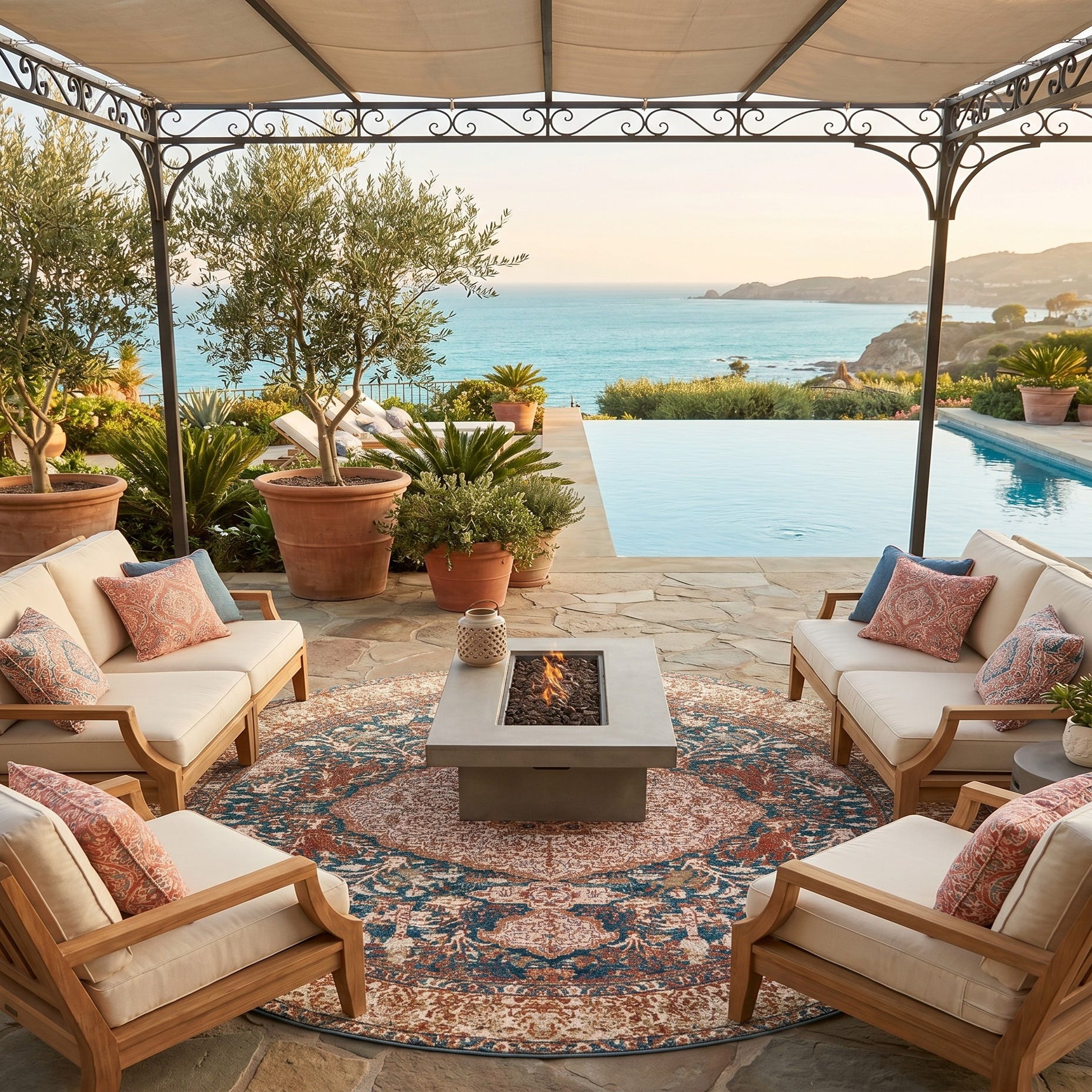 7' 10 x 7' 10 Easy-Clean Traditional Indoor / Outdoor Round Rug