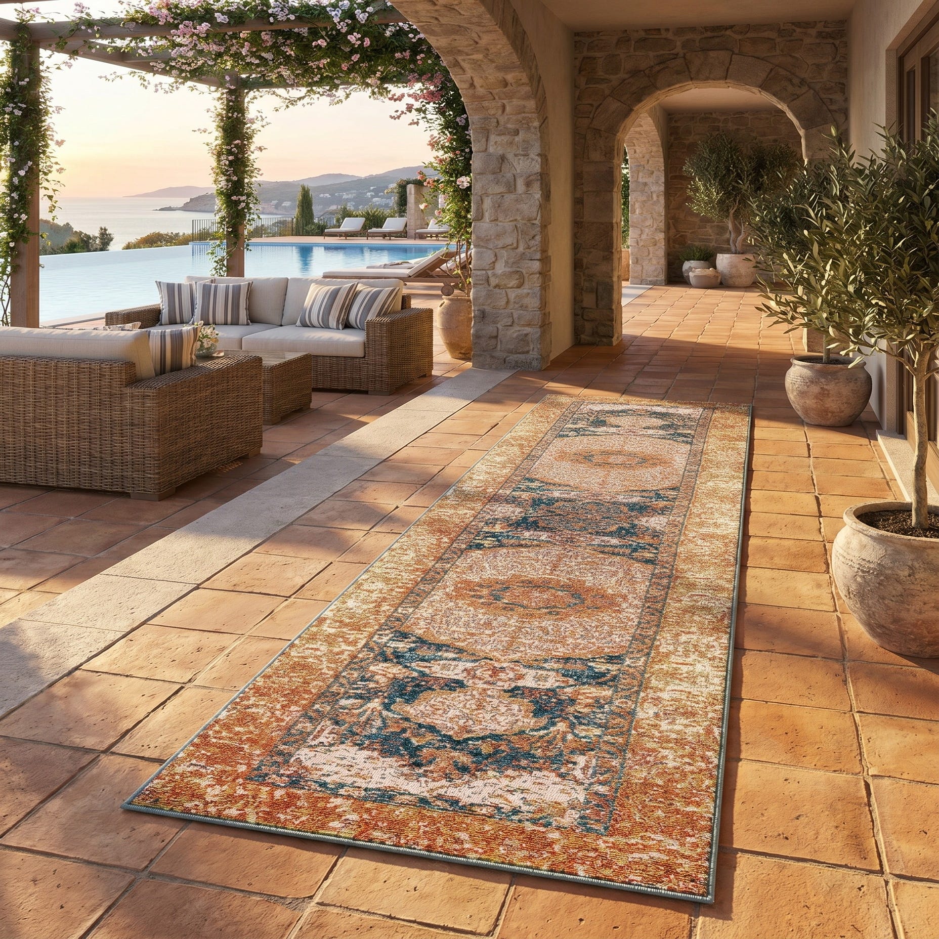 2' x 8' Easy-Clean Traditional Indoor / Outdoor Runner Rug