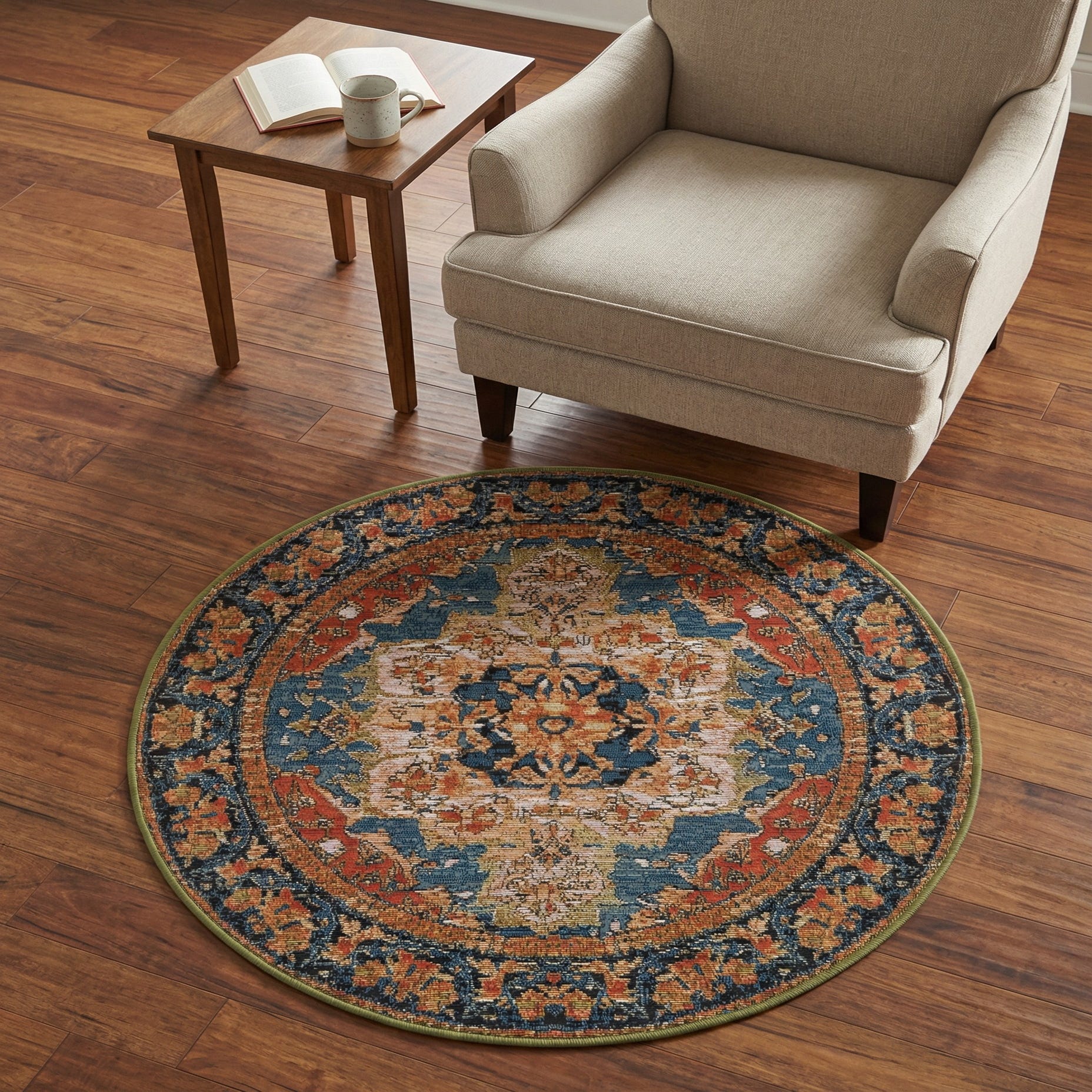 3' x 3' Washable Traditional Indoor / Outdoor Round Rug