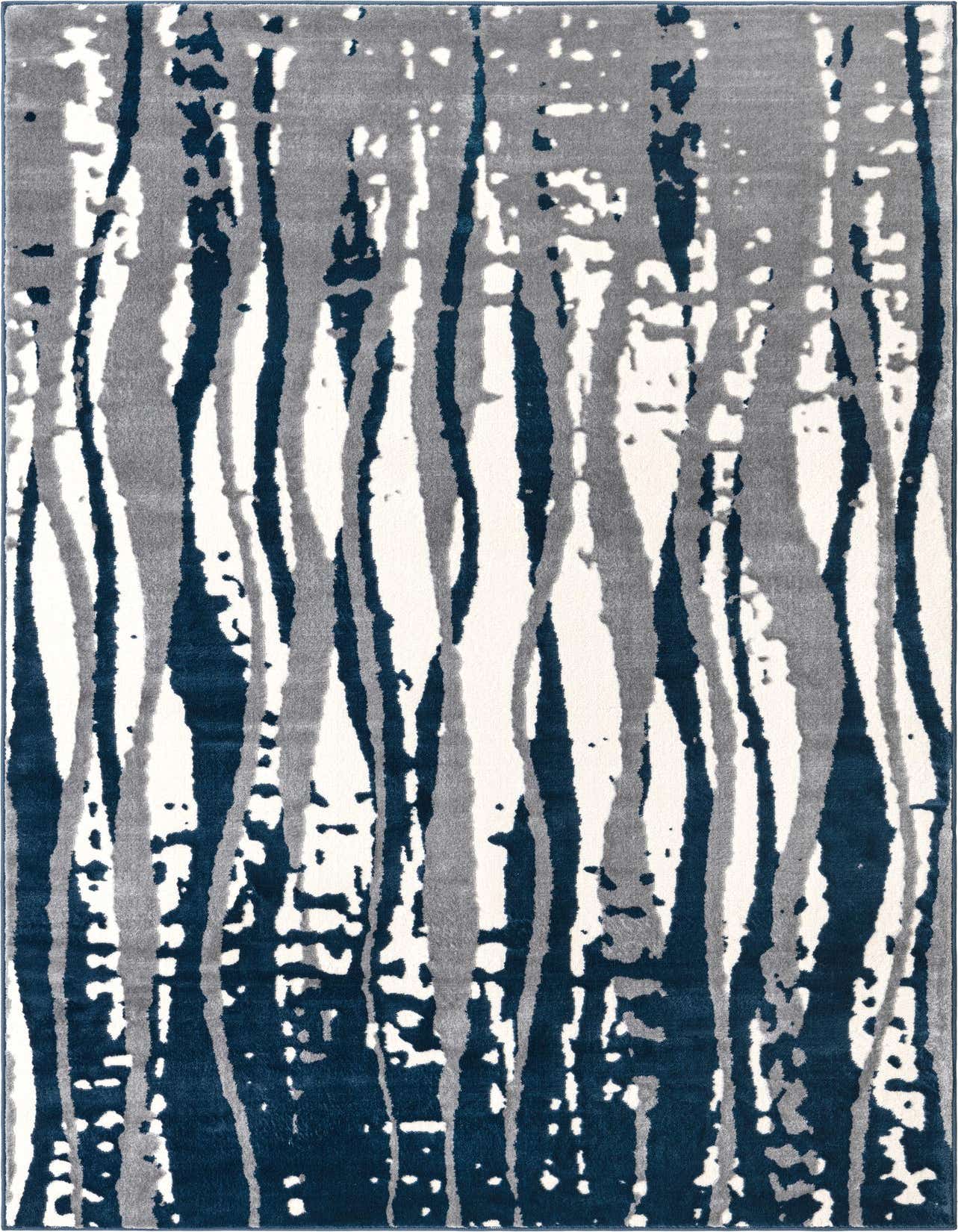 This machine-made sample presents an abstract vertical-stripe pattern of irregular, painterly streaks in gray and ivory layered over a navy blue background. The design reads like hand-applied brushstrokes, with strong vertical movement that adds visual height to a room. Made from 60% polypropylene and 40% polyester, the rug has a soft, low-profile pile with a smooth, slightly velvety hand that keeps the pattern crisp while offering comfortable underfoot texture.