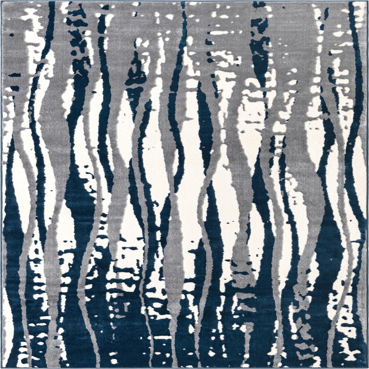 Primary color is Navy Blue. Colors in this rug include: Navy Blue, Gray, Ivory.