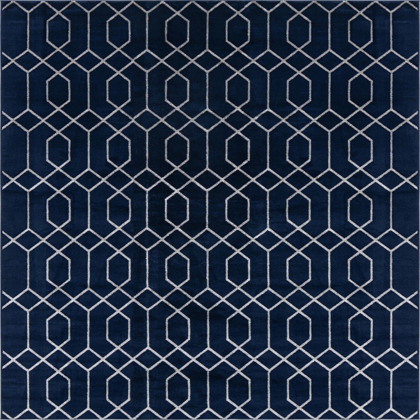 The Marilyn Monroe™ Glam Trellis rug offers a bold and modern statement to any living space with its geometric trellis pattern. This 10x14 area rug features a rich Navy Blue Silver background, contrasted by a crisp Silver trellis design, creating a sophisticated and contemporary look. Machine woven from a durable blend of 70% polypropylene and 30% polyester, the rug presents a plush texture while assuring longevity and ease of maintenance.