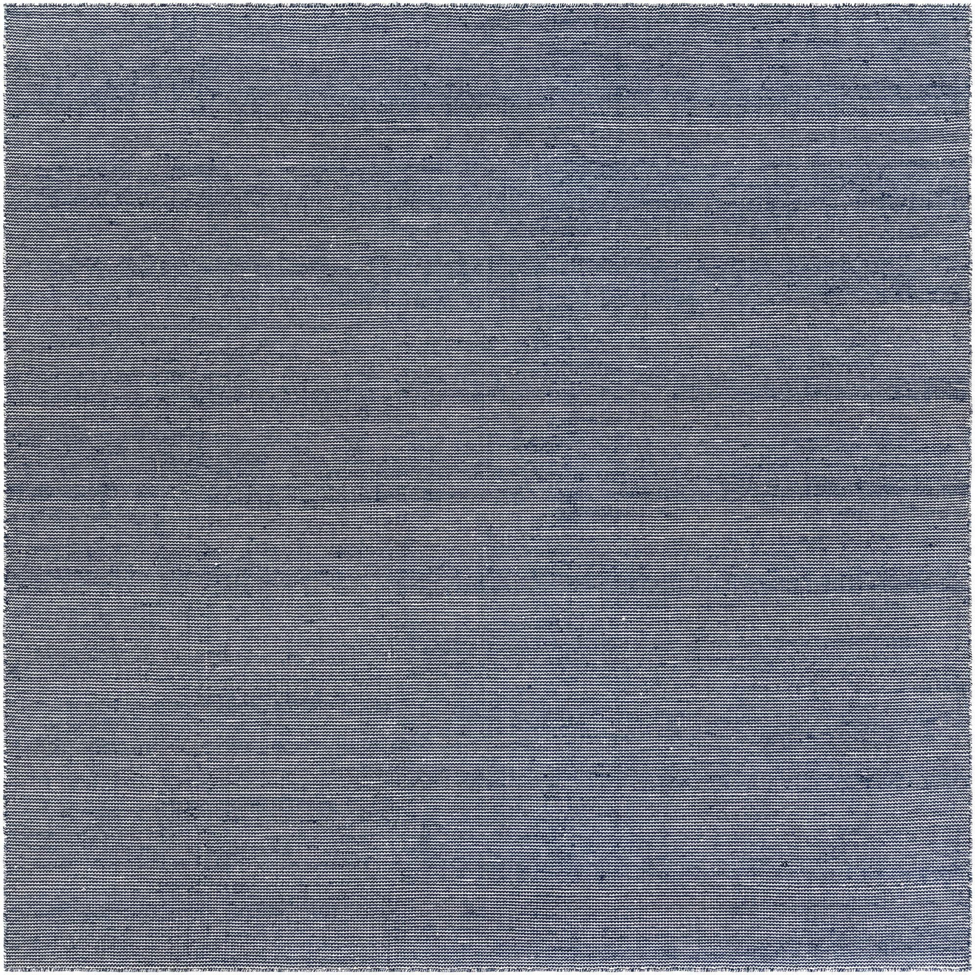 A 10'x10' square navy sky modern flatweave rug with a subtle textured pile, suitable for indoor/outdoor use.