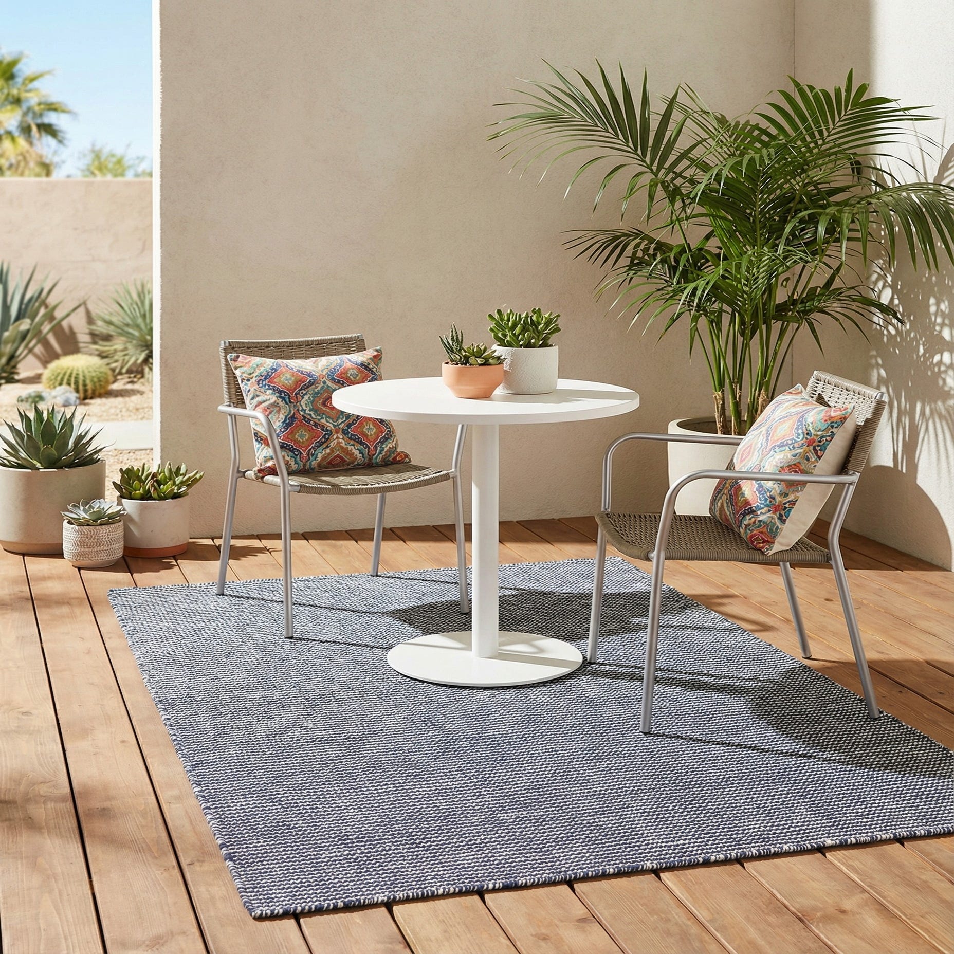 A 3x5 rectangular Jill Zarin Palm Springs Outdoor rug in Navy Sky, featuring a modern textured flatweave pattern.