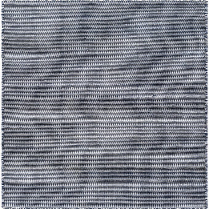 The navy-and-ivory palette and clean linear pattern suit a range of looks from coastal and nautical to modern farmhouse and transitional. Place it in a hallway or entry to anchor light wood floors, lay it down on a covered porch or balcony to delineate seating areas, or use it in a busy kitchen where a durable, low-profile runner is needed. Pair with natural wicker, crisp white linens, or matte metal accents to complement the rug’s cool tones and textured weave.