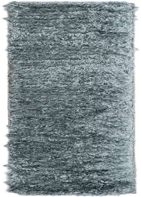 A long, plush 10 Ft runner rug in a soft blue-grey shag texture, perfect for a hallway.