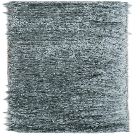 Plush, high-pile shag in a single, Niagara background creates a soft, tactile surface with subtle variation where the long polyester yarns catch light and form a gently rippled texture. The machine-made construction and 100% polyester fibers produce a silky hand and a slight sheen that enhances the depth of the pile while keeping the look relaxed and contemporary.