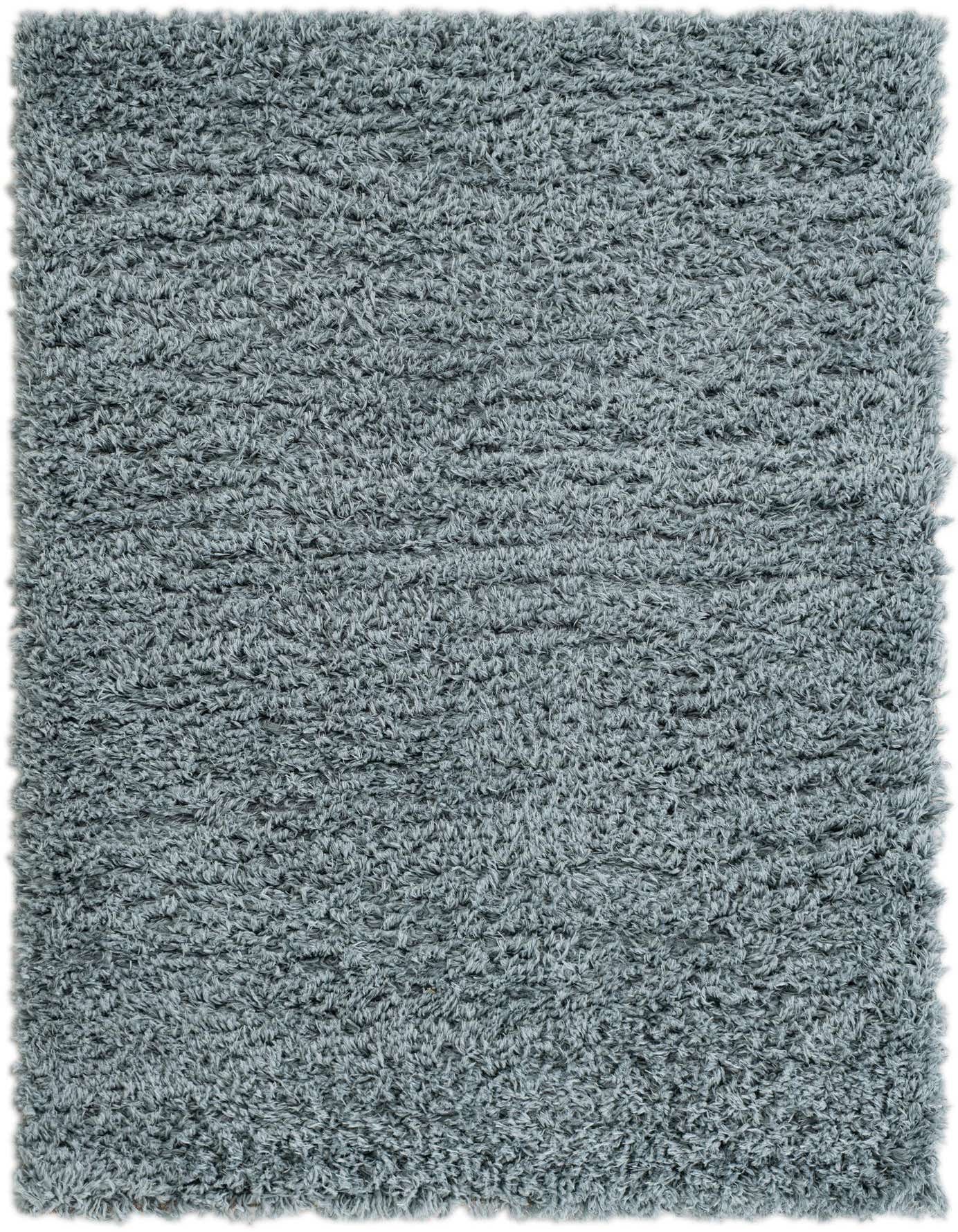 Plush, long-cut polyester fibers form a relaxed shag in a single, Niagara background that reads as a calm blue-gray with a hint of sea-glass. The pile creates a soft, tactile surface with gentle textural variation where the fibers shift and catch light, giving depth without a distinct printed pattern. The overall effect is clean and contemporary: a solid-color shag with subtle dimensionality from the pile itself.