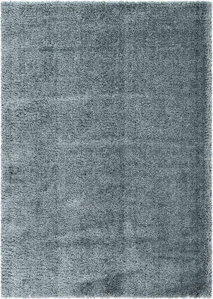 A deep shag pile in a solid, minimalist layout gives this rug a quietly refined presence. The background color is Niagara, a cool blue-green tone that carries subtle tonal variation across the dense fibers, creating gentle shifts in shade as the pile moves. The overall pattern is intentionally simple — a uniform shag surface that emphasizes texture rather than ornament.