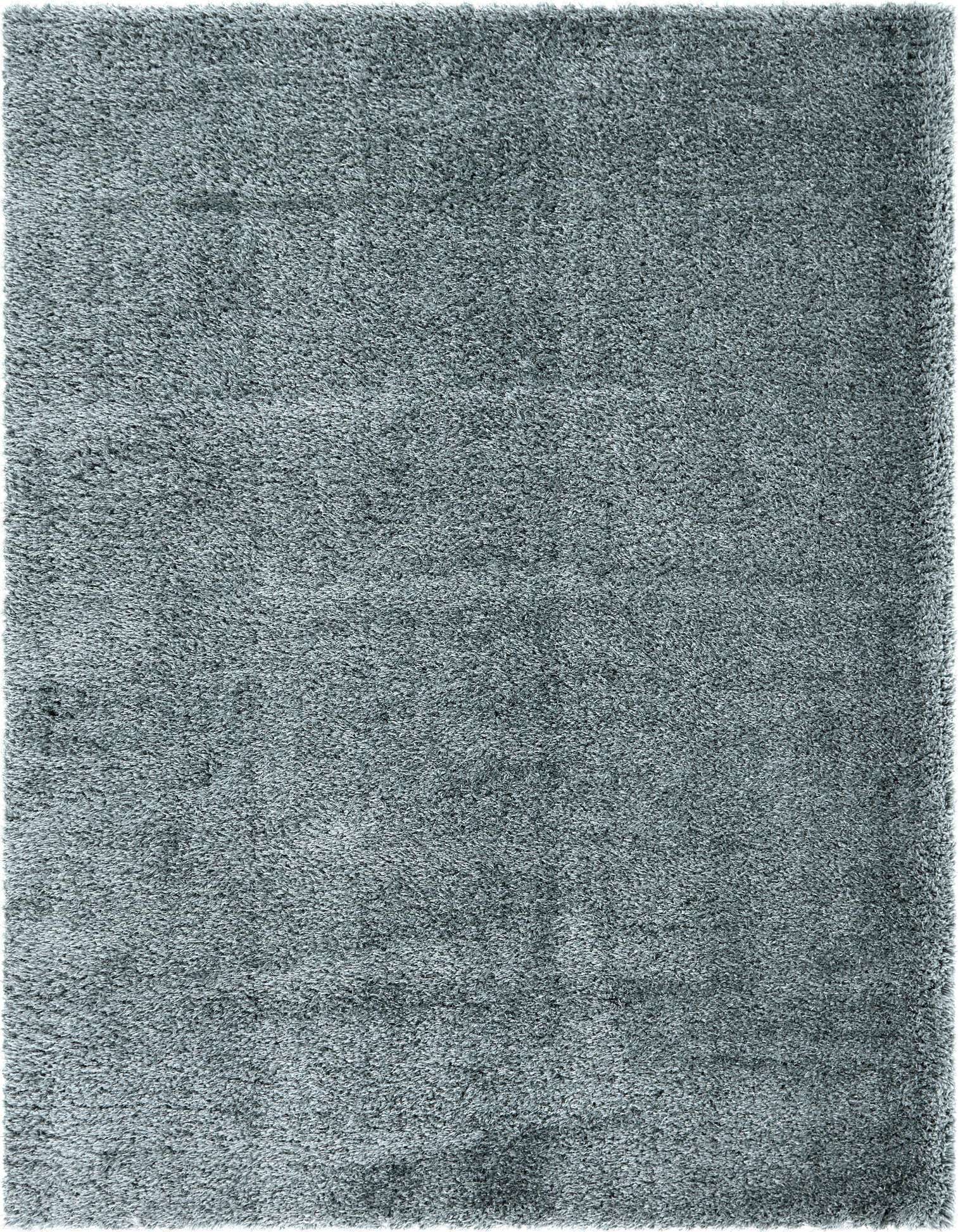 A soft, plush 9x12 rectangular blue shag area rug, ideal for adding comfort and modern style to a living room.