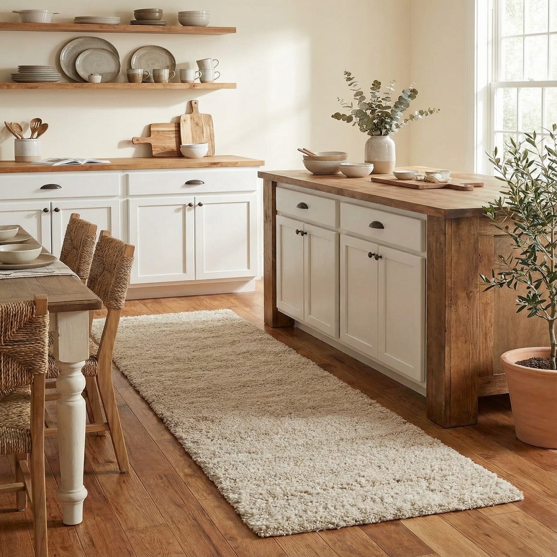 This Soft Solid Shag Runner is well-suited for a multitude of settings. Its elongated shape makes it perfect for hallways, entryways, or alongside a bed in a bedroom, providing a cozy landing for feet in the morning. Its neutral color and simple design make it a seamless addition to minimalist decor, Scandinavian-inspired spaces, or any setting where comfort and subtlety are valued. Its resilience against stains and lack of shedding also make it a practical option for families and pet owners.