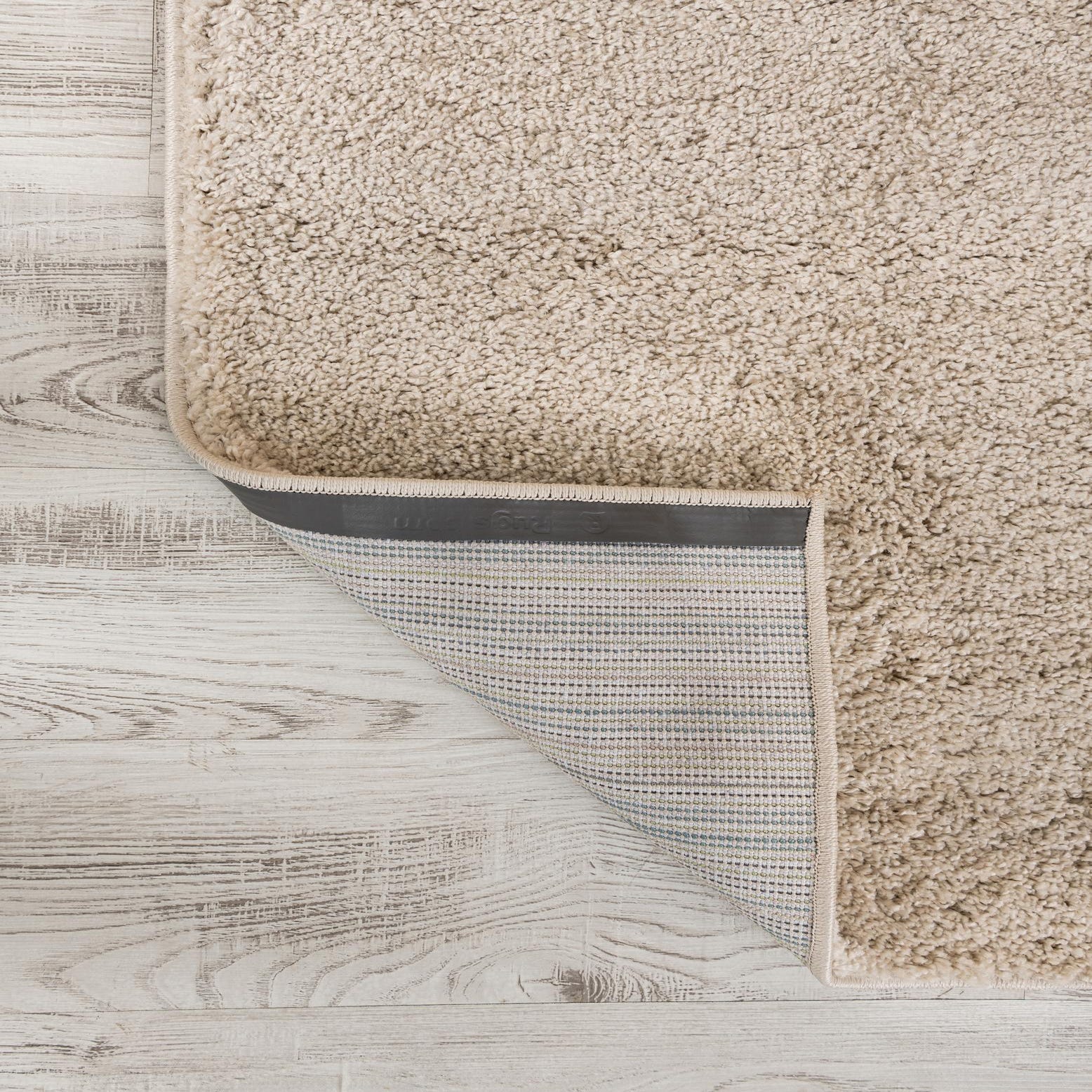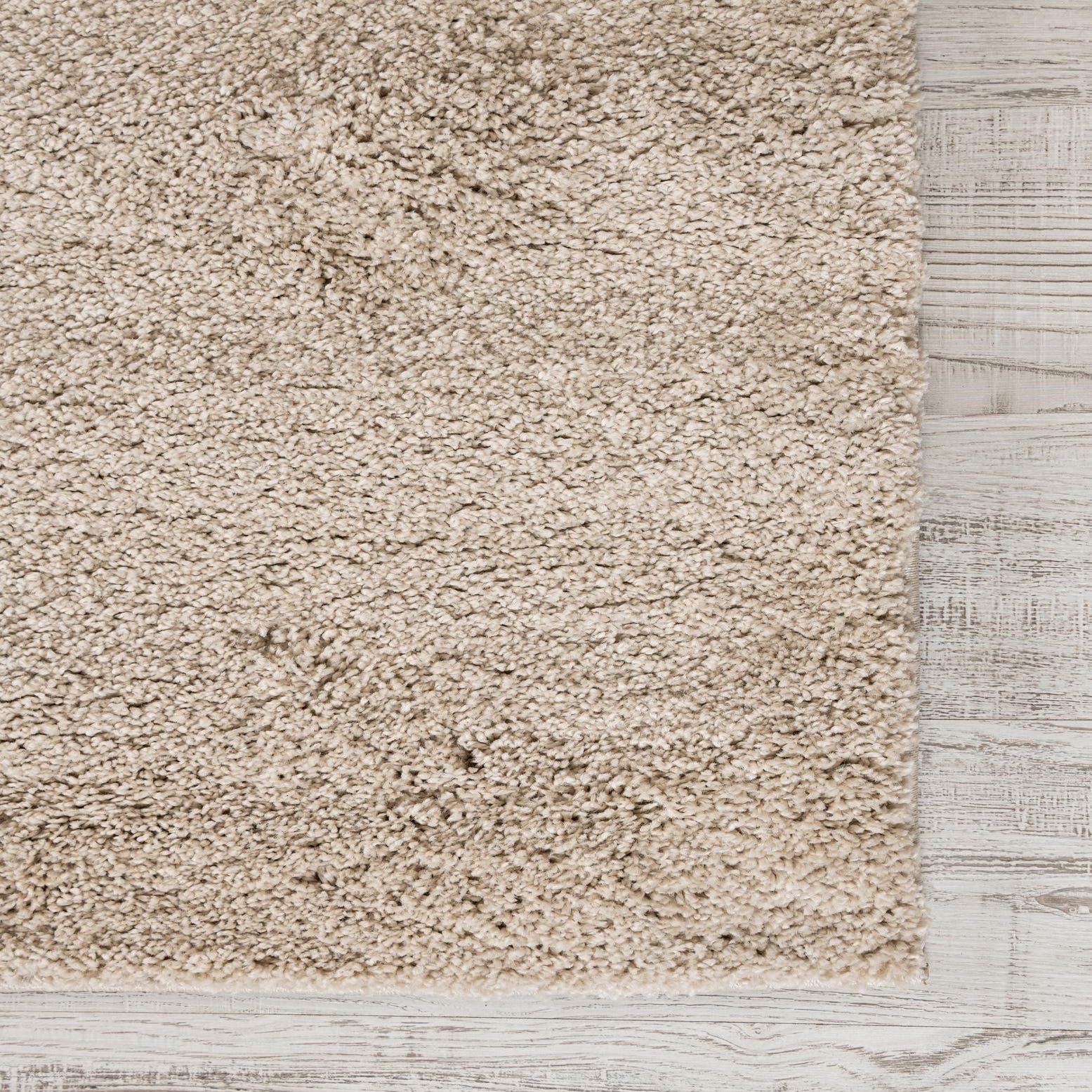 A warm field of Oatmeal Beige fills this plush shag, creating a calm, uniform surface that layers subtle texture into a room without competing with other patterns. The dense, high pile invites bare feet—each step compresses the yarn slightly, revealing a gentle nap and a soft, cozy hand. Machine-made from 100% polypropylene, the pile has a low-sheen finish and tight, even construction that gives the rug a consistent look across its surface.