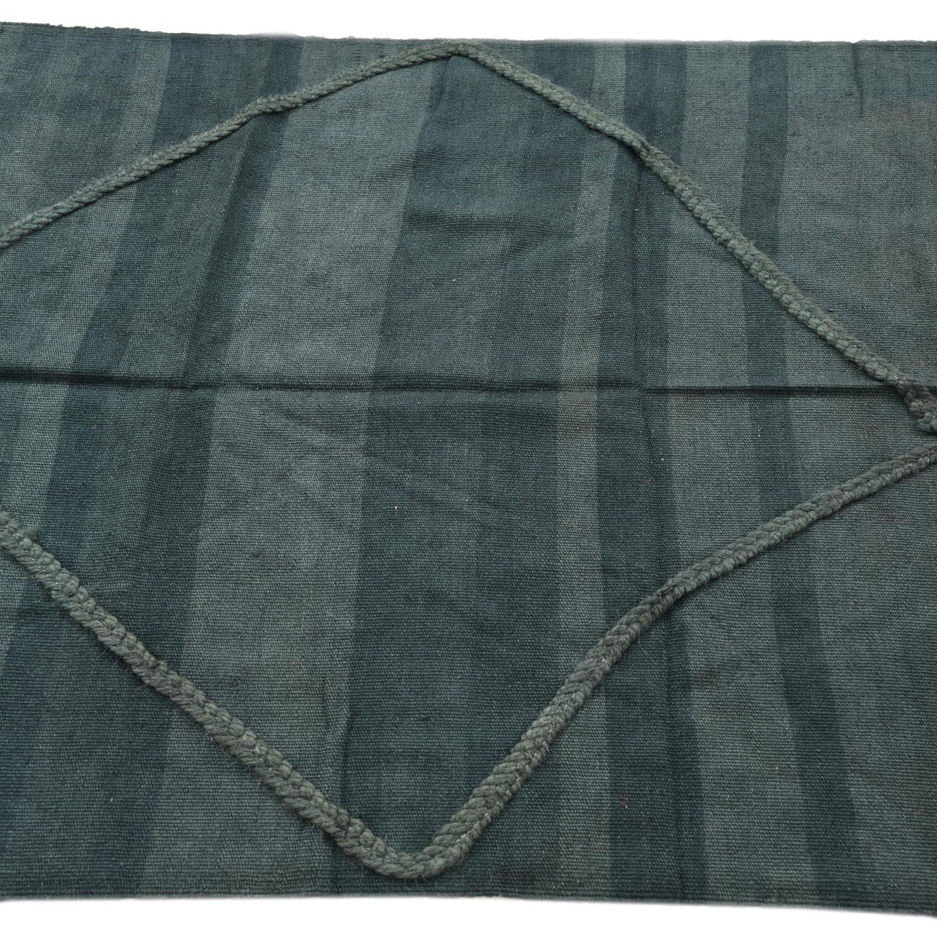 The Kilim Modern collection presents a striking 11 Ft Runner hand-woven from 100% wool, offering a durable and tactile addition to any space. This runner features a primarily olive background, detailed with a geometric pattern that showcases contrasting lines to create an engaging visual effect. The rug's pattern draws the eye along its length, while the flatweave construction provides a smooth and inviting texture.