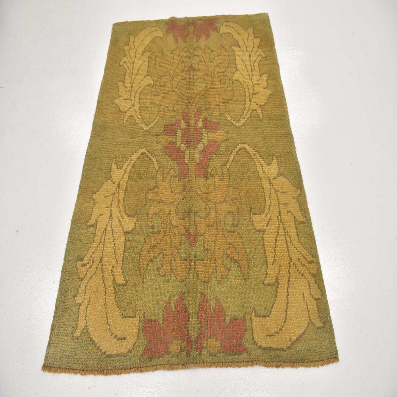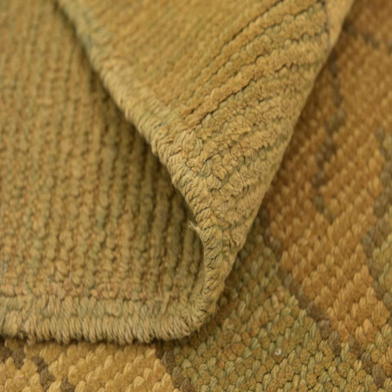 Primary color is Olive. Colors in this rug include: Olive, Beige, Brown, Cream, Peach, Gold.