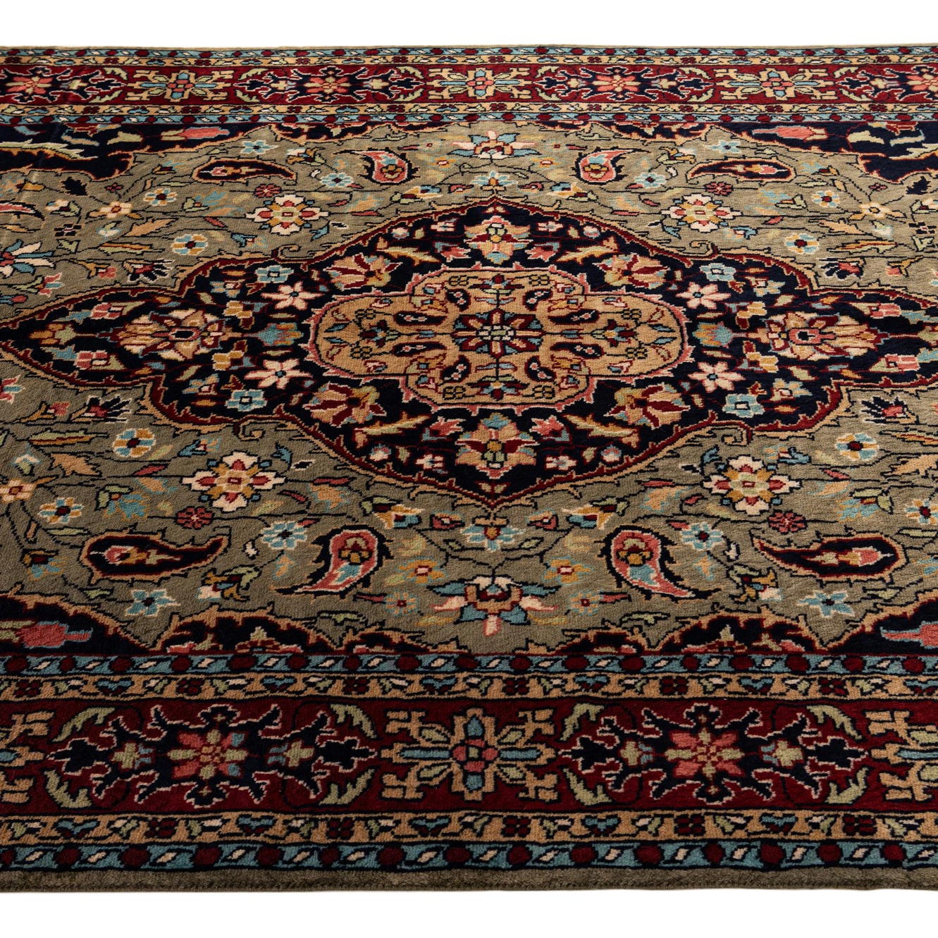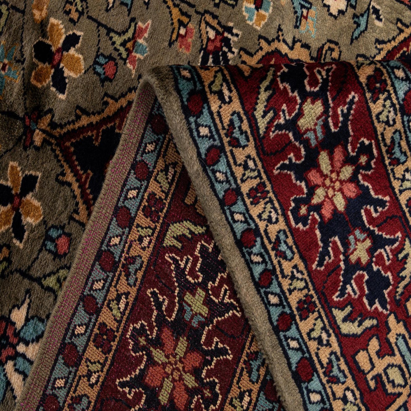 Primary color is Olive. Colors in this rug include: Olive, Beige, Black, Blue, Brown, Red, Yellow, Green.