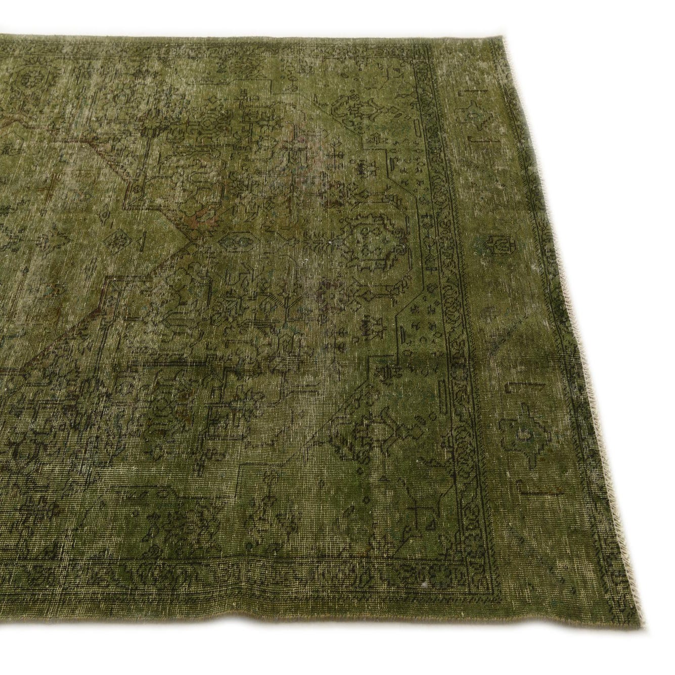 This 5x8 Ultra Vintage rug is hand-knotted from 100% wool, offering a robust and textured foundation for any room. The main colors that define this rug include olive and brown, with the background color being a rich olive. This gives the rug a warm and earthy feel, embodying a sense of time-honored elegance.