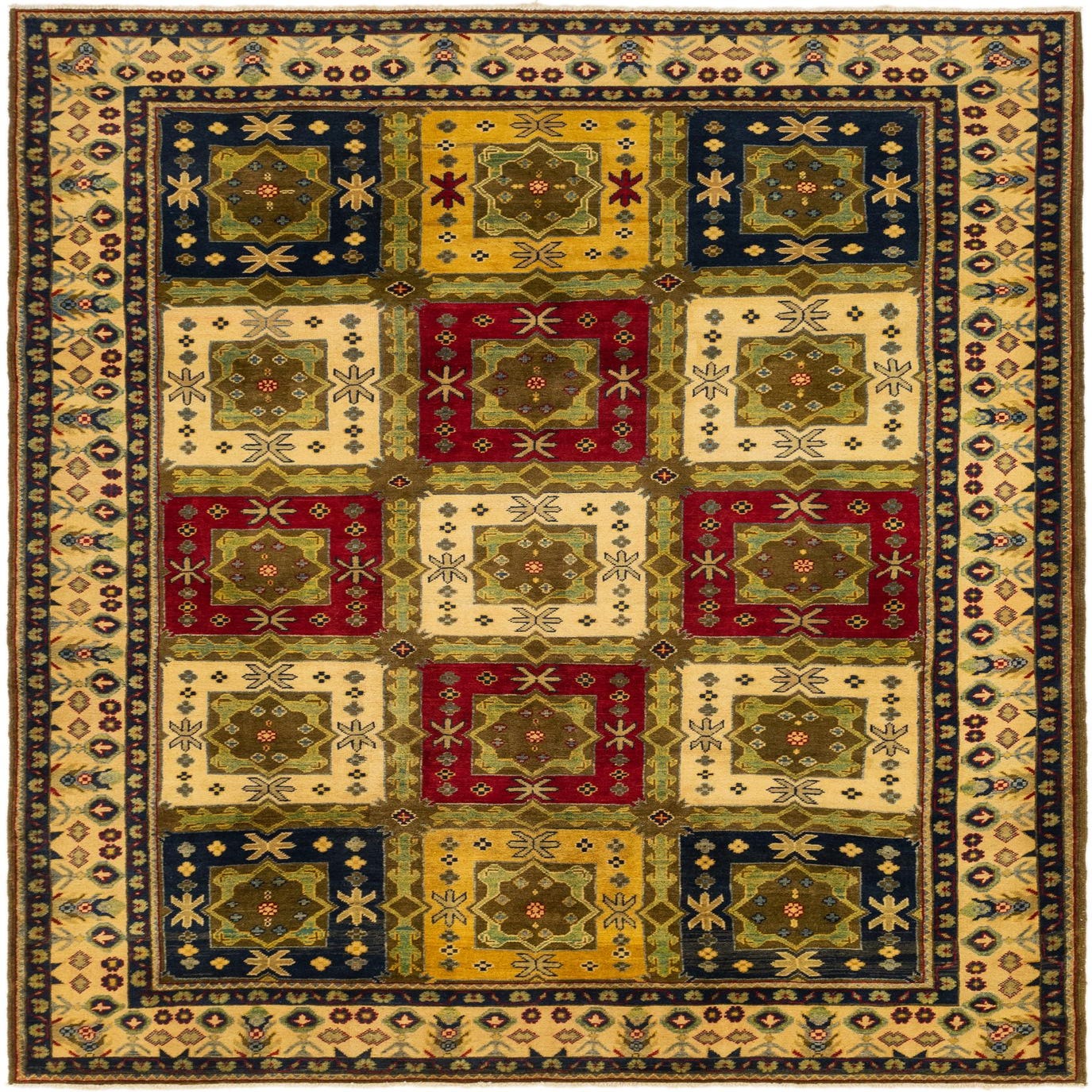 Primary color is Olive. Colors in this rug include: Olive, Black, Blue, Brown, Cream, Green, Red, Navy Blue.