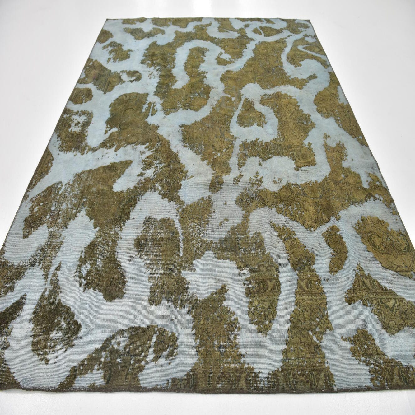 A 7x10 rectangular Ultra Vintage rug featuring an abstract pattern of white swirls over a distressed green Persian design.