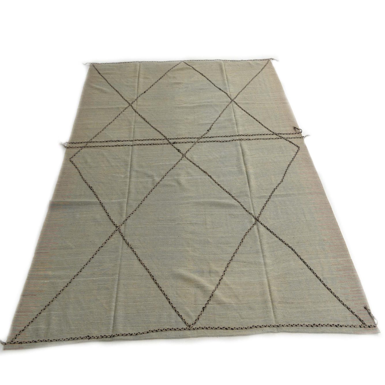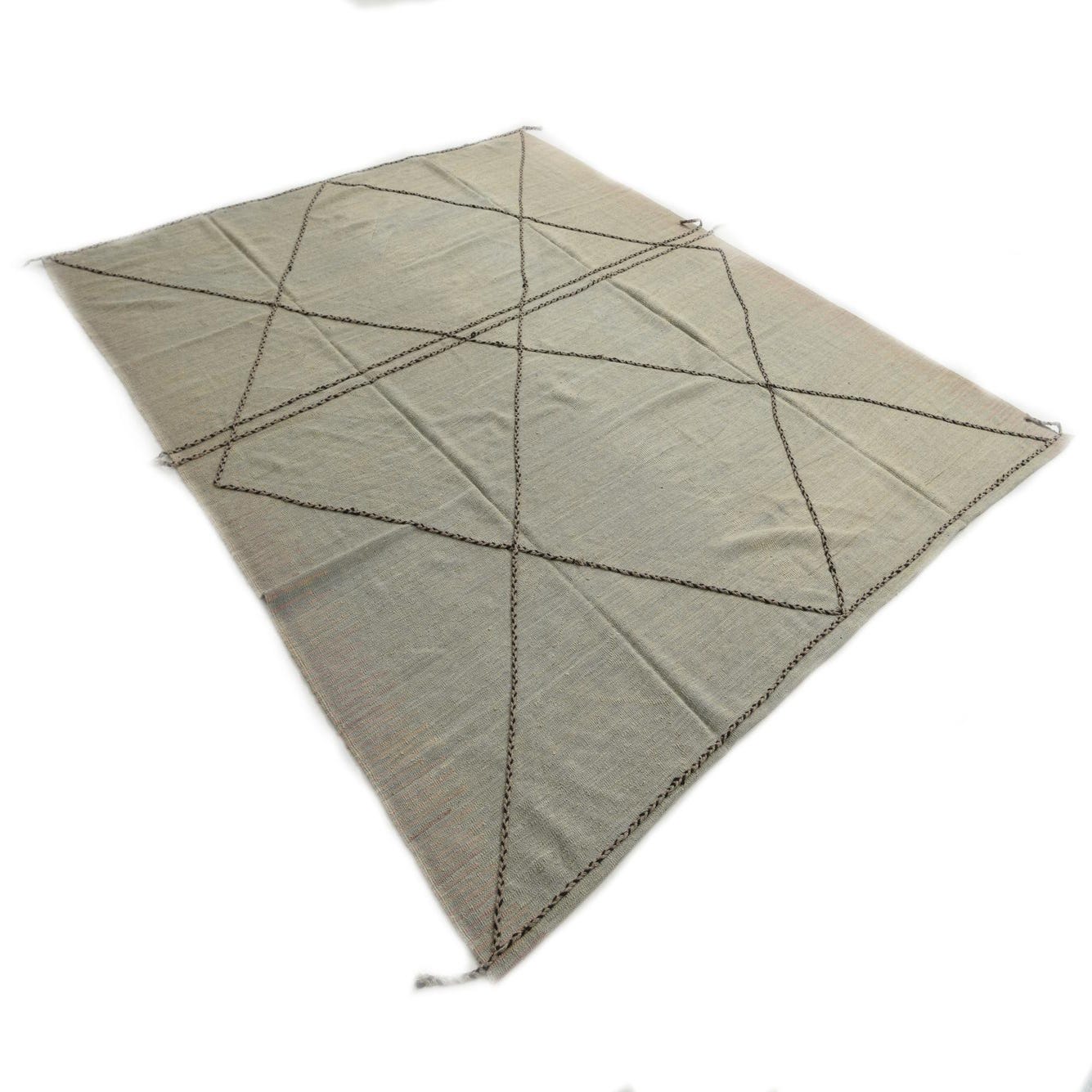 The understated yet compelling design of this rug makes it suitable for various interior styles, from modern minimalism to more eclectic or bohemian settings. The natural texture and earthy color palette work well in rooms with wooden elements or where a touch of organic, tactile appeal is desired. Its pattern does not overwhelm the space and would therefore harmonize with both neutral and bold color schemes. This rug could serve as a grounding anchor in a living room, under a dining table, or in a spacious bedroom, seamlessly integrating with existing decor while providing a touch of artisanal character.