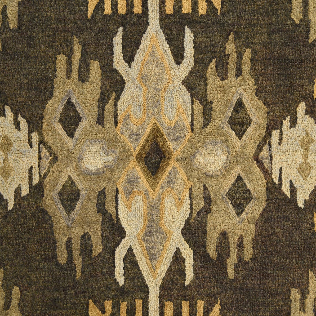 Primary color is Olive. Colors in this rug include: Olive, Black, Gold, Gray, Light Blue, Light Green.