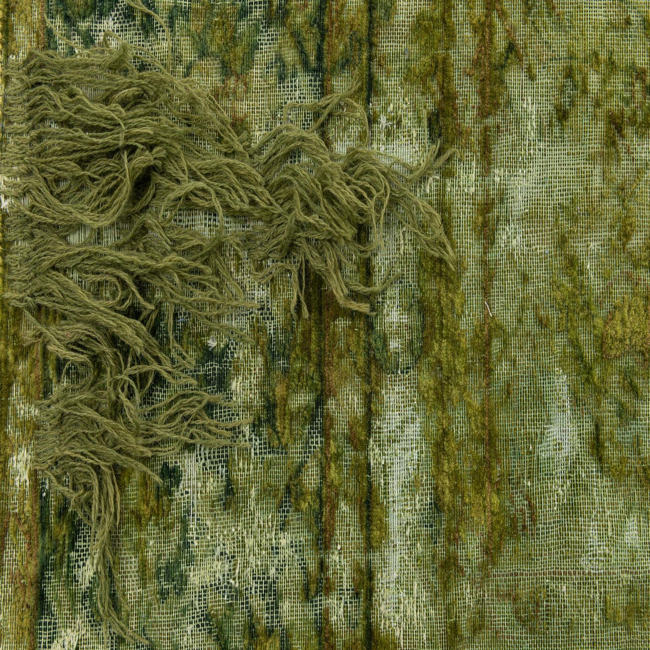 Primary color is Olive. Colors in this rug include: Olive, Brown, Green.