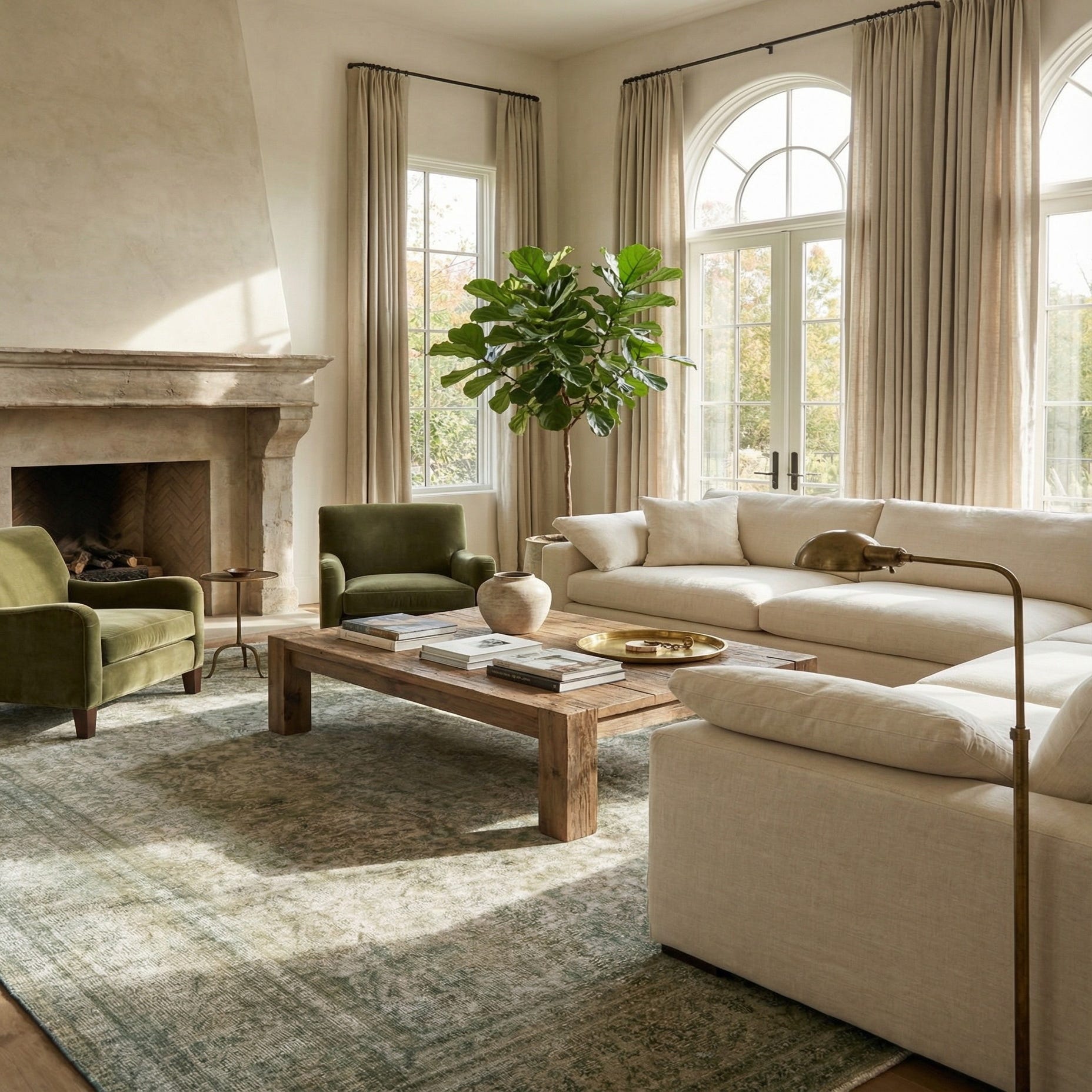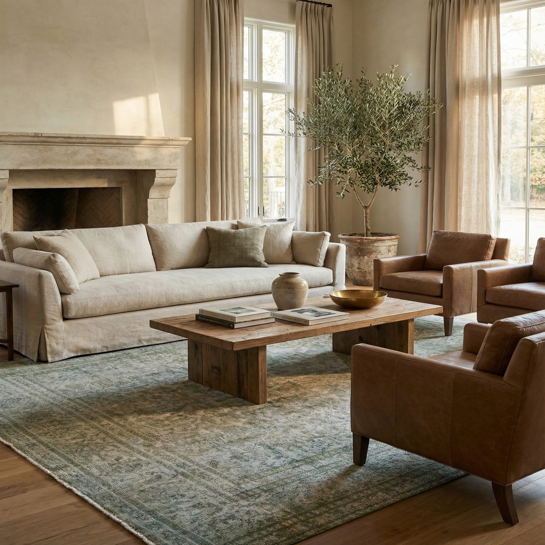 Primary color is Olive. Colors in this rug include: Olive, Brown, Ivory.