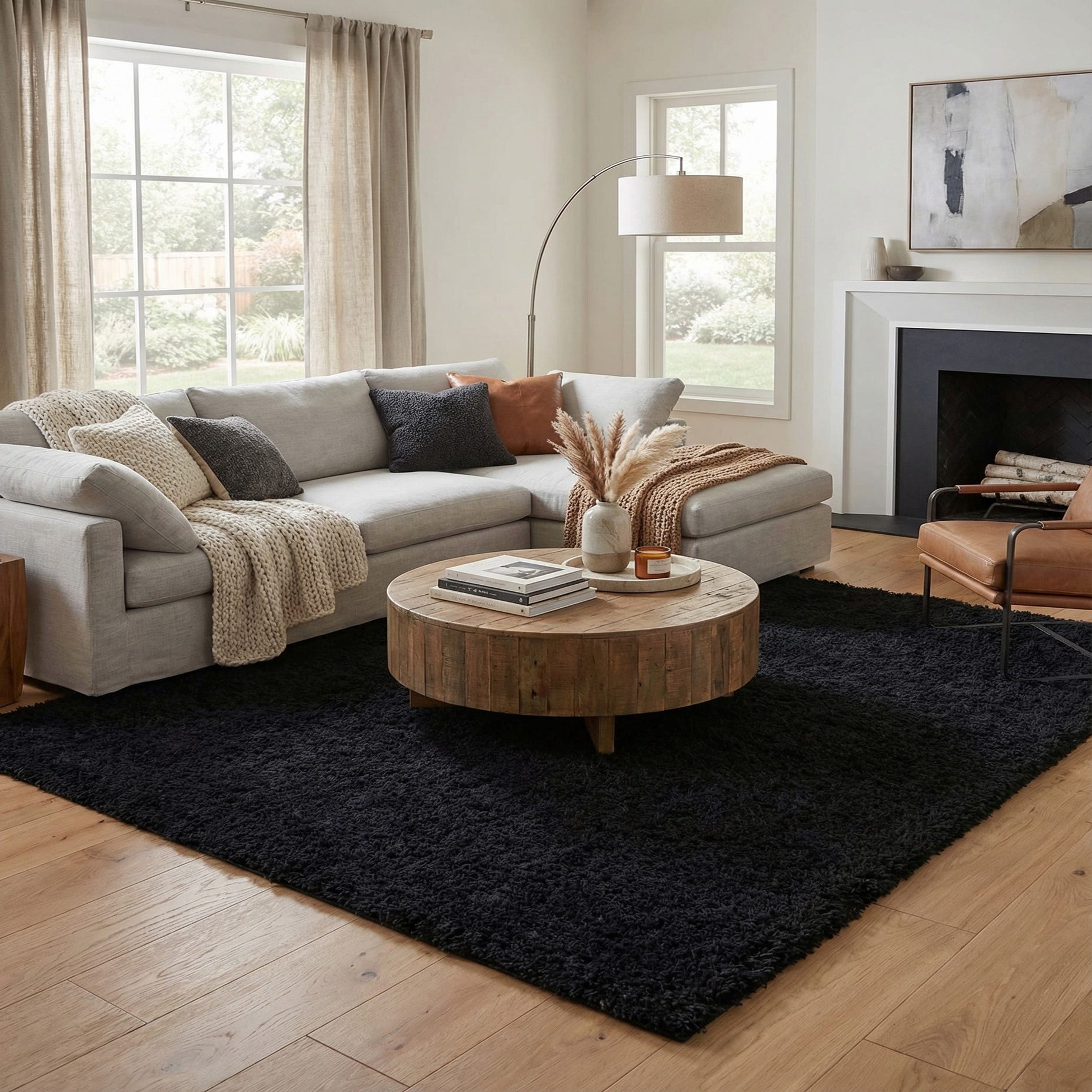 This piece works well as a grounding layer in contemporary and minimalist interiors, especially under a low-profile sofa, in a media room, or in a bedroom where a soft landing is welcome. Pair it with light woods and metallic accents for contrast, set it under a monochrome seating group to amplify a modern aesthetic, or use it to add tactile warmth to a reading nook or home office.