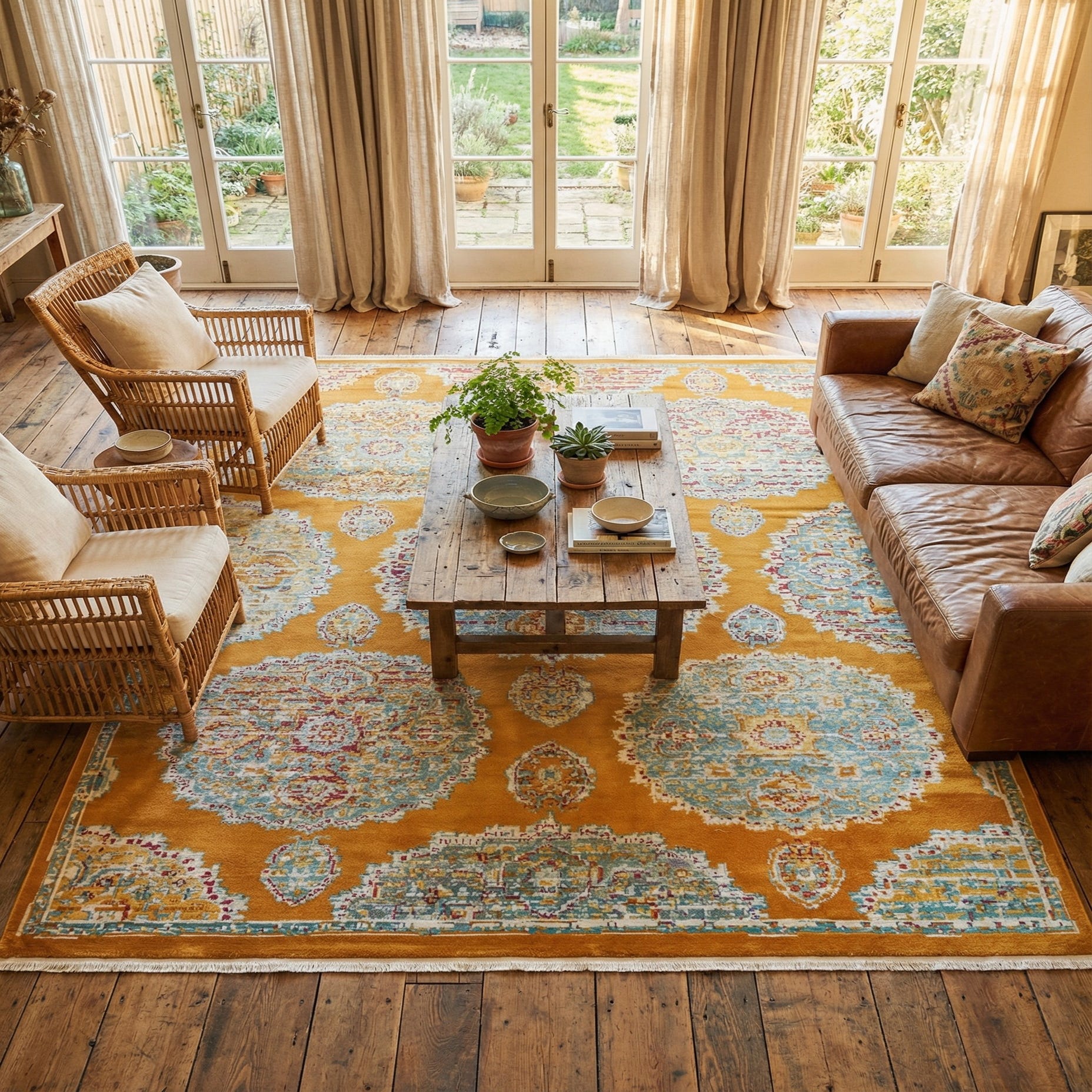 Machine-made from 100% polypropylene, the rug has a low, dense pile with a soft hand and a slight sheen that catches light without overwhelming a room. Its profile works well under furniture and in high-traffic areas, making it suitable for anchoring a seating group in the living room, grounding a dining area, or bringing color to a home office. Pair it with warm wood tones and neutral upholstery to let the orange glow carry the palette, or layer it into an eclectic scheme with rattan, brass accents, and jewel-toned cushions for a more vibrant look.