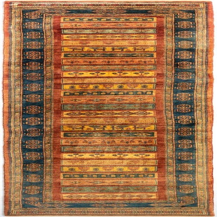 Primary color is Orange. Colors in this rug include: Orange, Orange, Beige, Light Blue, PNK, Green, Red.