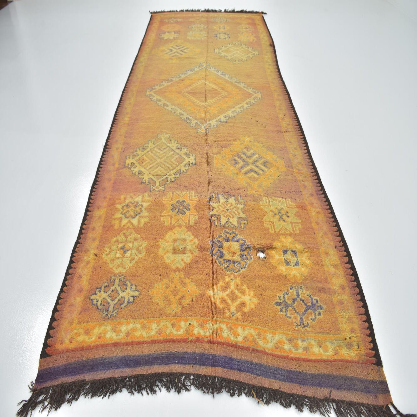 Ideal for adding warmth and a touch of tradition to a hallway or a long, narrow space, this piece's elegant design and bright, warm colors make it suitable for interiors that favor rustic, eclectic, or bohemian decor. Its extended length may also serve as a vivid focal point in a minimalist setting, contrasting well against understated furniture and neutral color schemes.