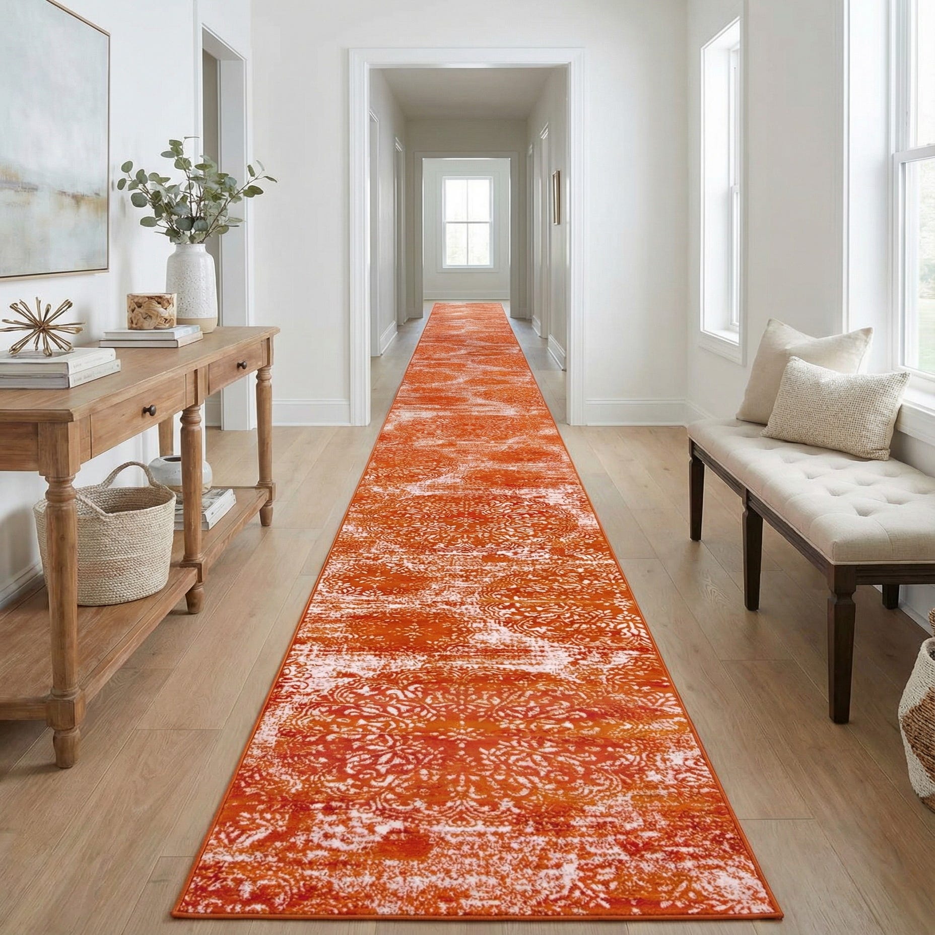 Primary color is Orange. Colors in this rug include: Orange, Ivory.