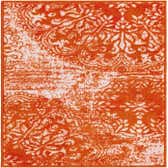 A 2x3 rectangular orange and white rug with a distressed traditional floral pattern, suitable for an entryway or kitchen.
