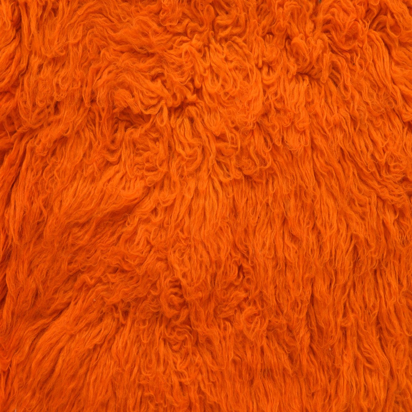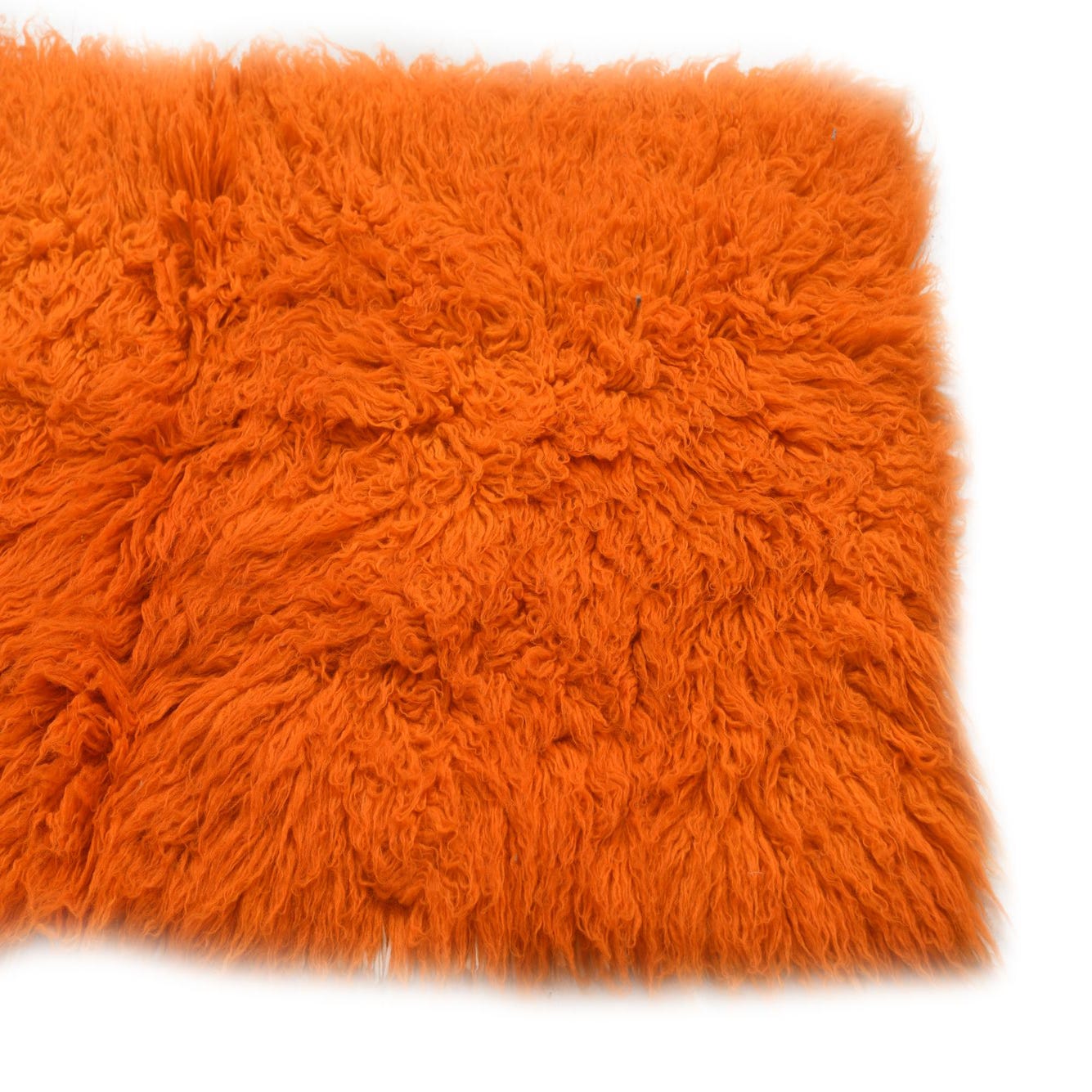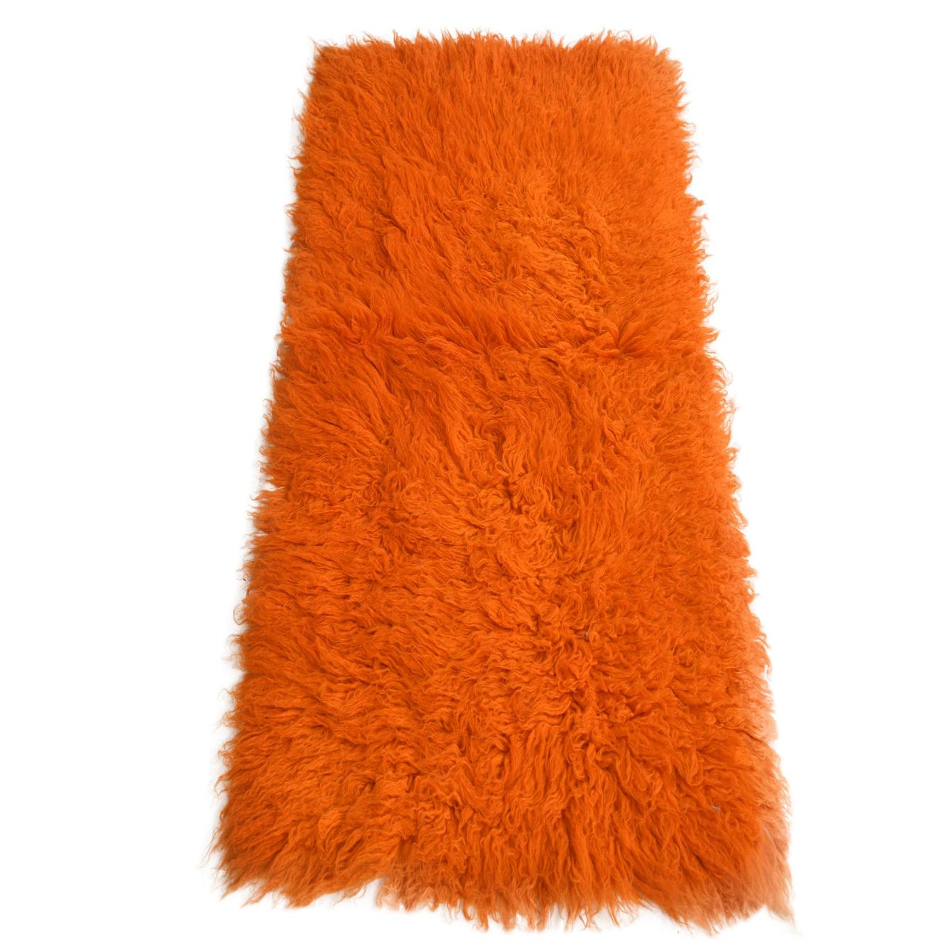 A vibrant 2x3 rectangular orange shag rug with a thick, plush pile, ideal for adding warmth and color to an indoor space.