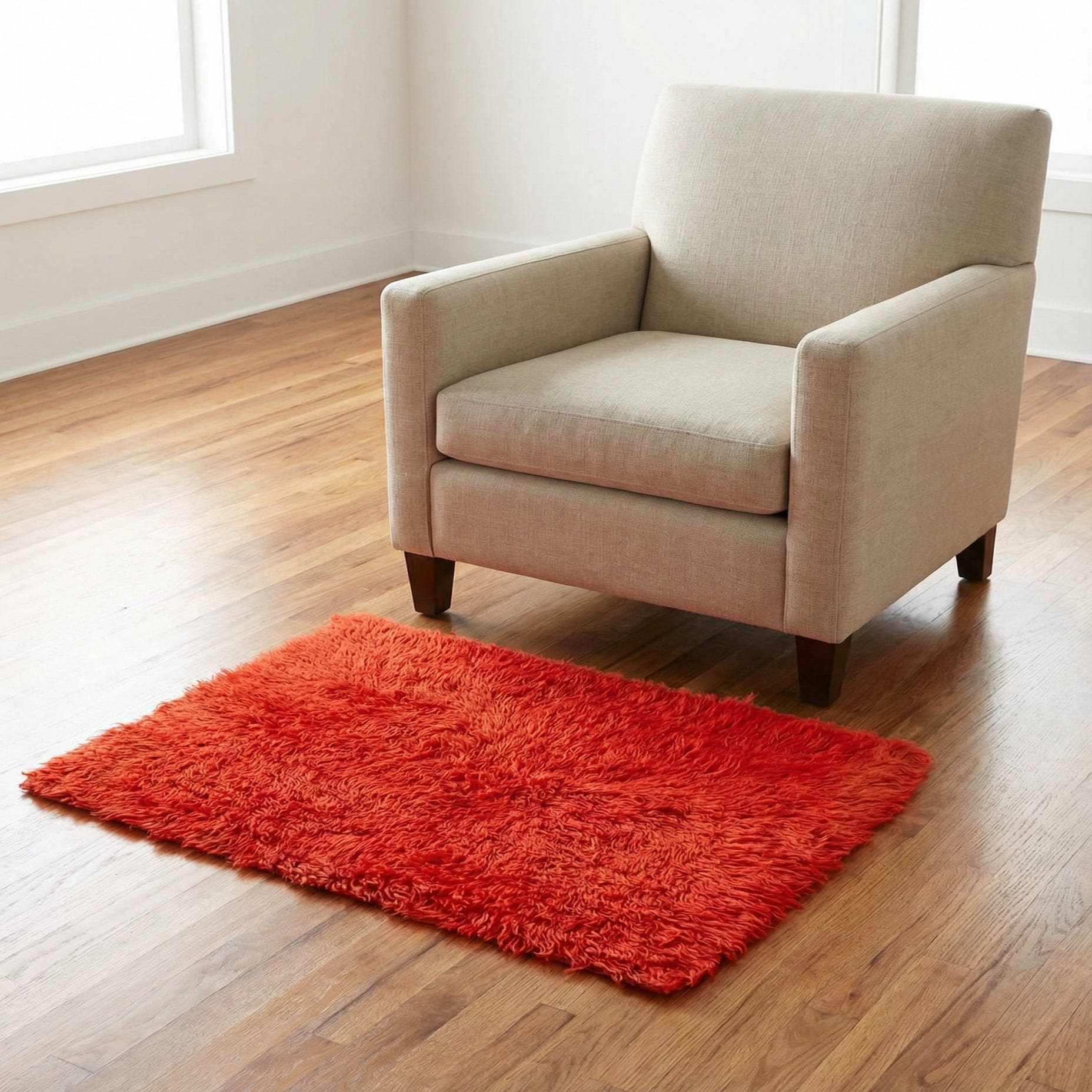 This Moroccan Collection rug showcases a rich orange background, imbued with a lush and dynamic texture that enriches its visual depth. Hand-knotted from 100% wool, the rug offers resilience and a tactile experience underfoot. The 3x4 dimensions provide a versatile size for integrating into various spaces. Its bold color palette lends itself well to interiors seeking a pop of vibrancy, suitable for eclectic, bohemian, or modern aesthetics. The simple yet impactful solid color design can act as a focal point or complement to other statement pieces within a room.