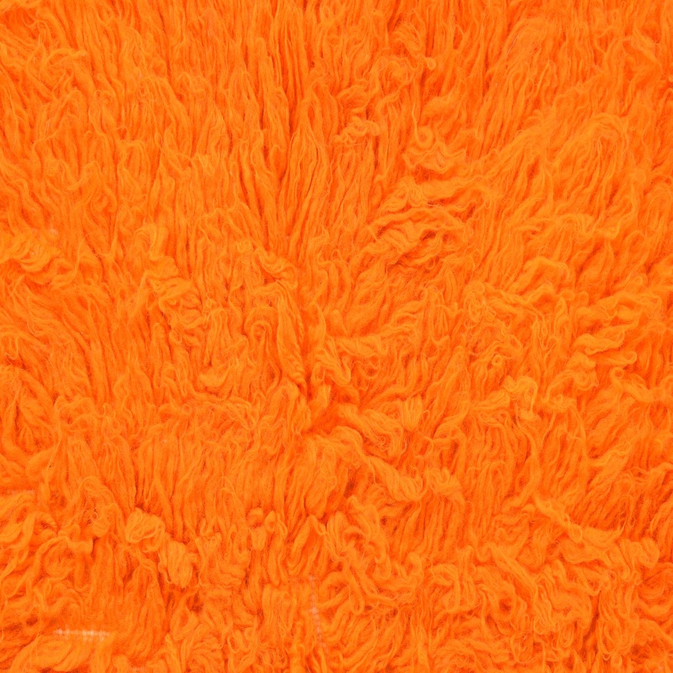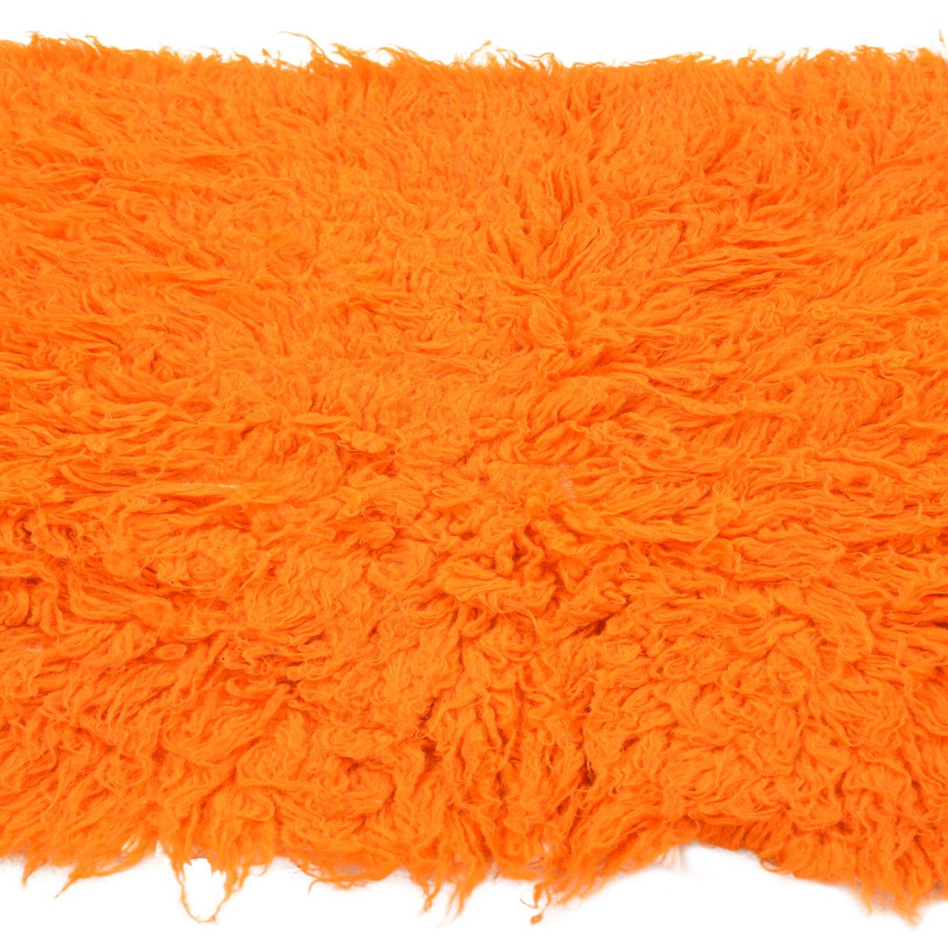 A vibrant 3x5 rectangular orange shag rug, handmade from wool, featuring a plush, high pile texture.