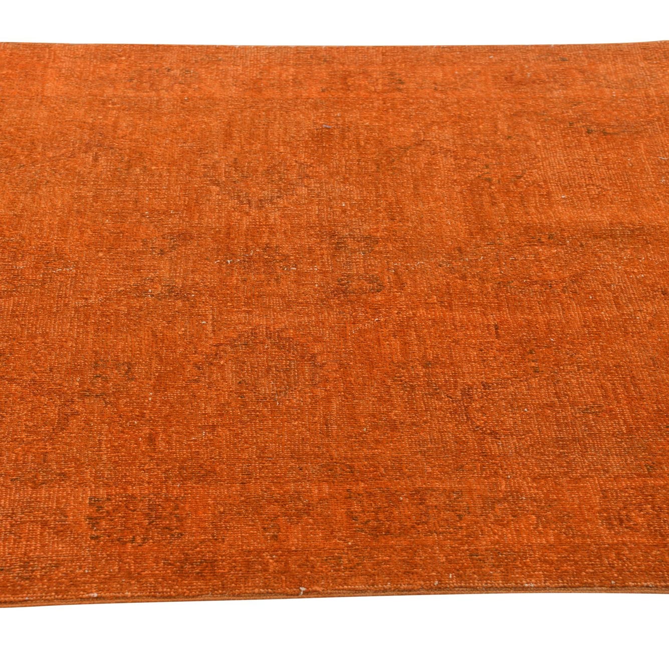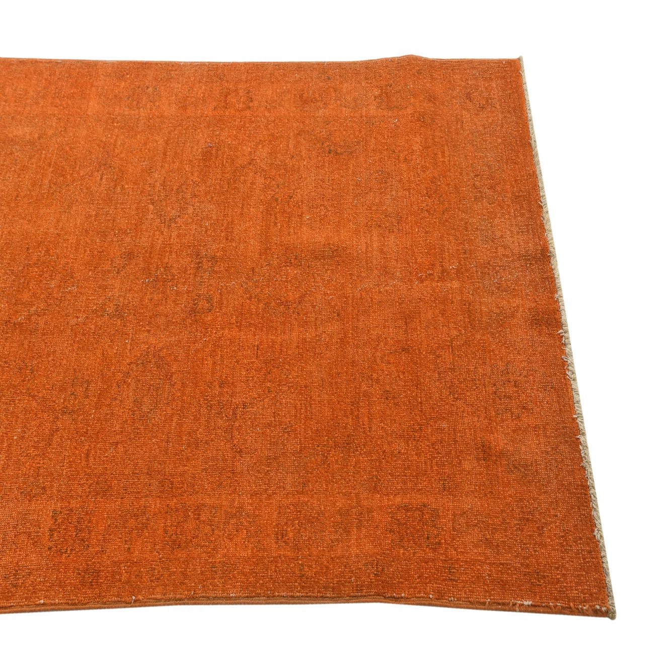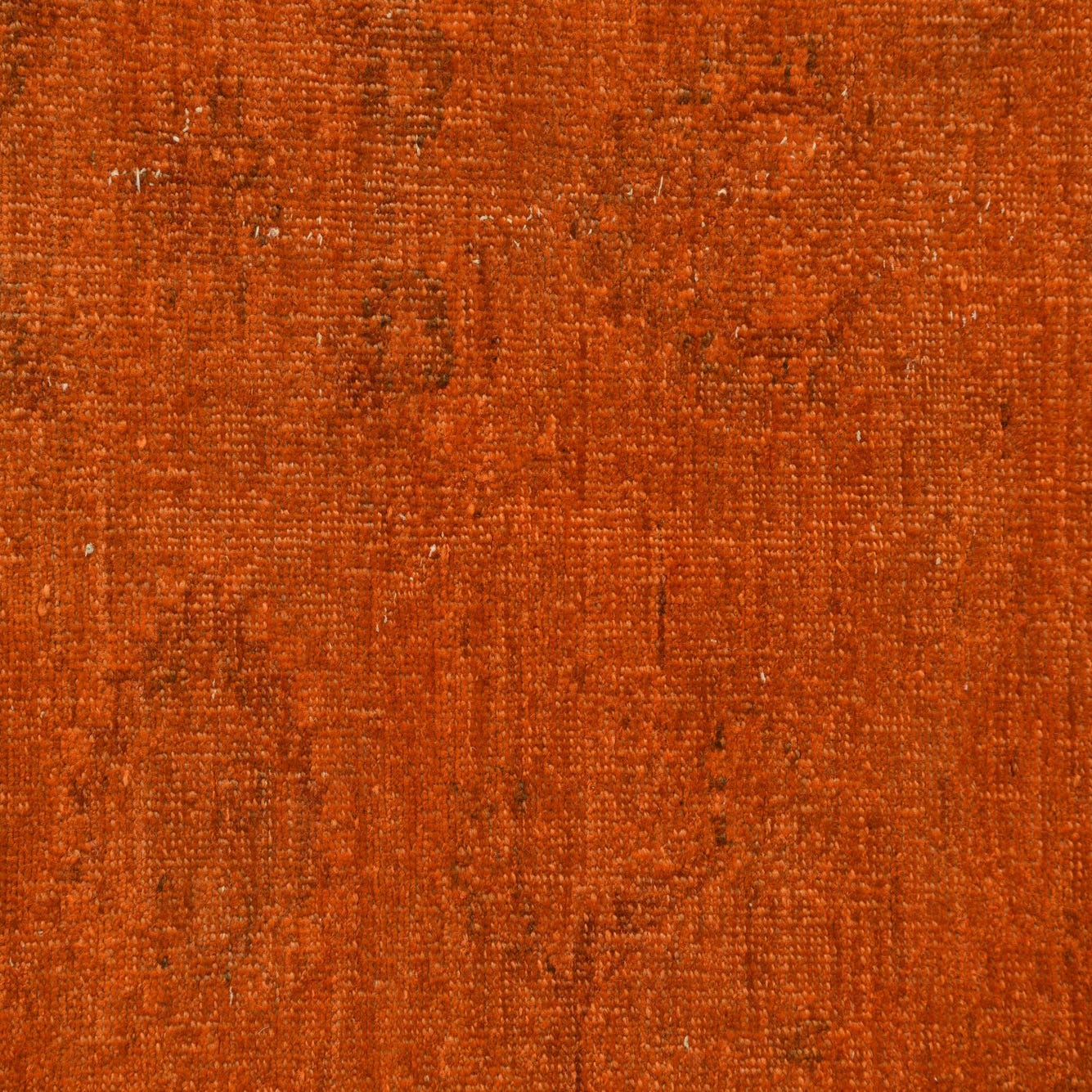 A 3x5 rectangular orange traditional wool rug with subtle oriental patterns and fringed edges, suitable for a kitchen or entryway.
