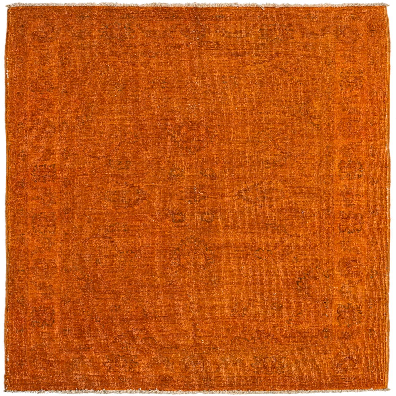 This Peshawar Ziegler 3x5 rug, hand-knotted from 100% hand-spun wool, presents a refined, traditional aesthetic with a warm and inviting presence. Its predominantly orange background exhibits subtle variations, providing a rich, earthy foundation that is both versatile and visually appealing. Infused within the orange are intricate patterns in softer shades of green and red, adding depth and detail without overwhelming the rug's overall warm tone.