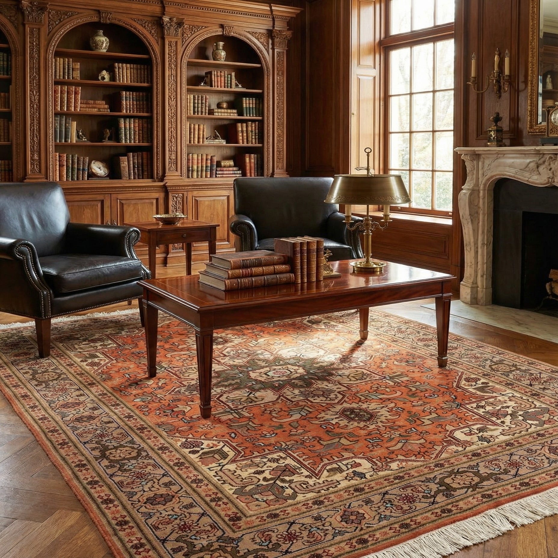 Suitable for a variety of decor styles, this rug could serve as a statement piece in a traditional living room, an elegant touch in a classic dining area, or even a sophisticated accent in a home office. It could also work well in spaces that blend modern furnishings with classic elements, where the rug's vibrant color and time-honored pattern can bridge the gap between old and new.