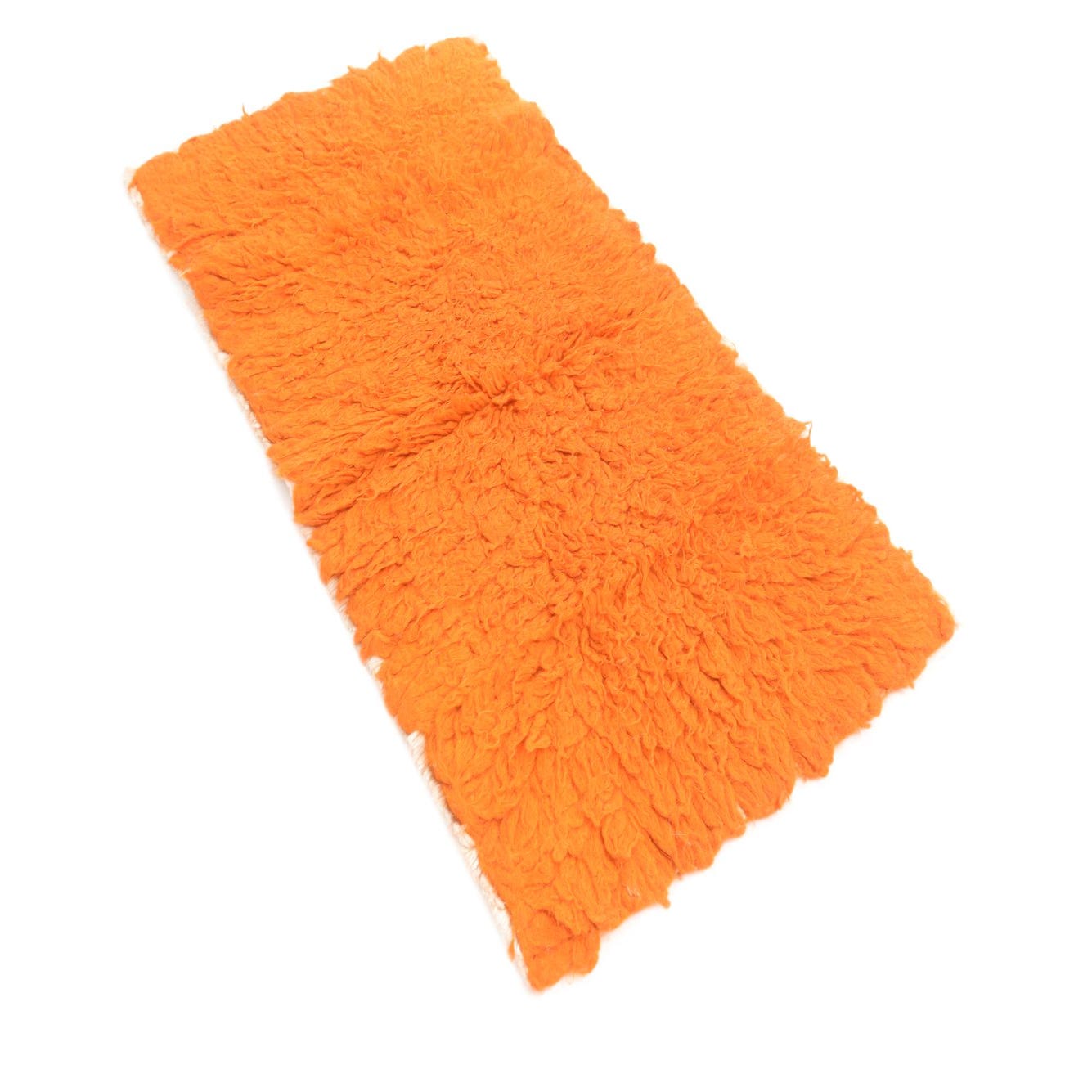 A vibrant orange 4 ft runner rug with a plush, shaggy texture, perfect for adding warmth to a hallway.