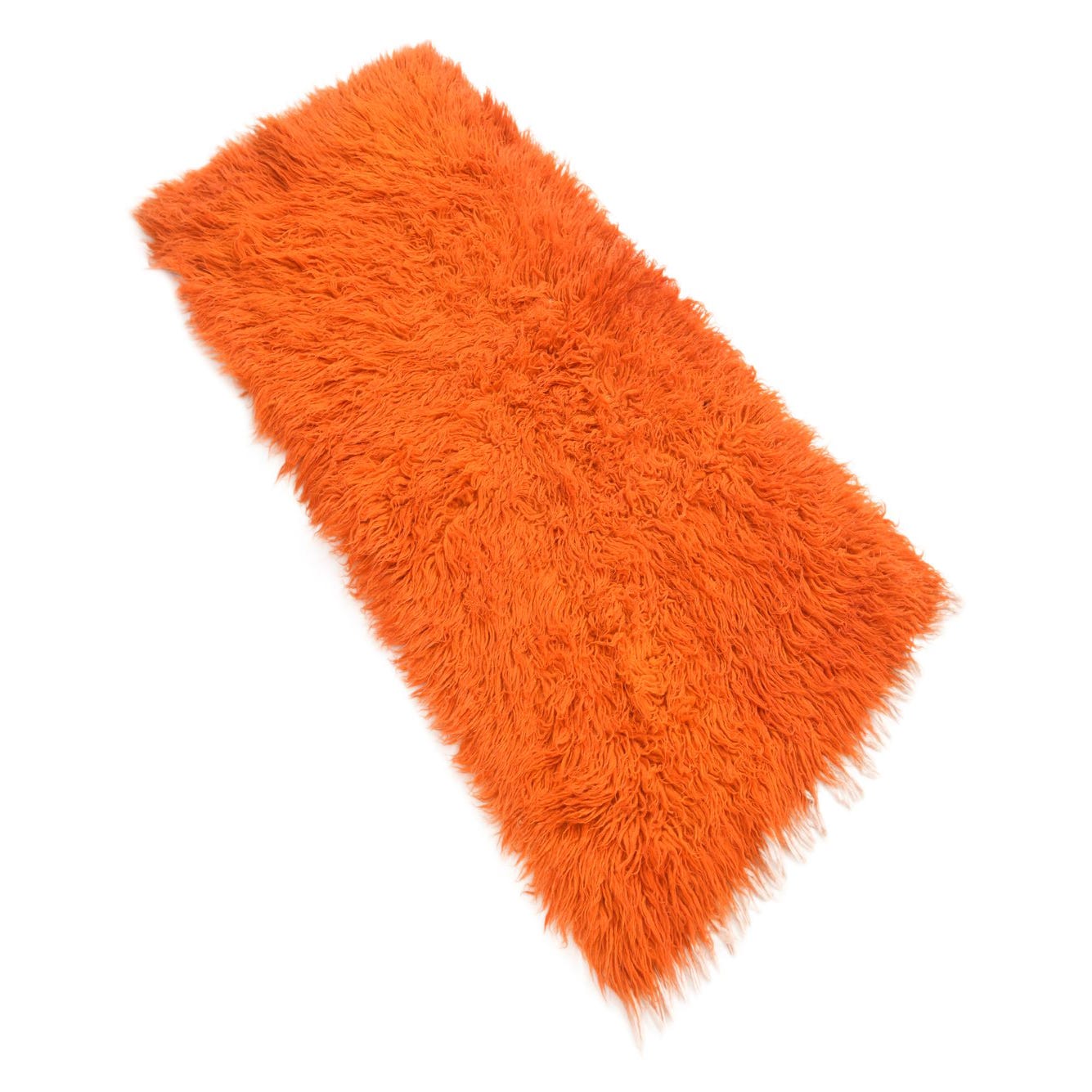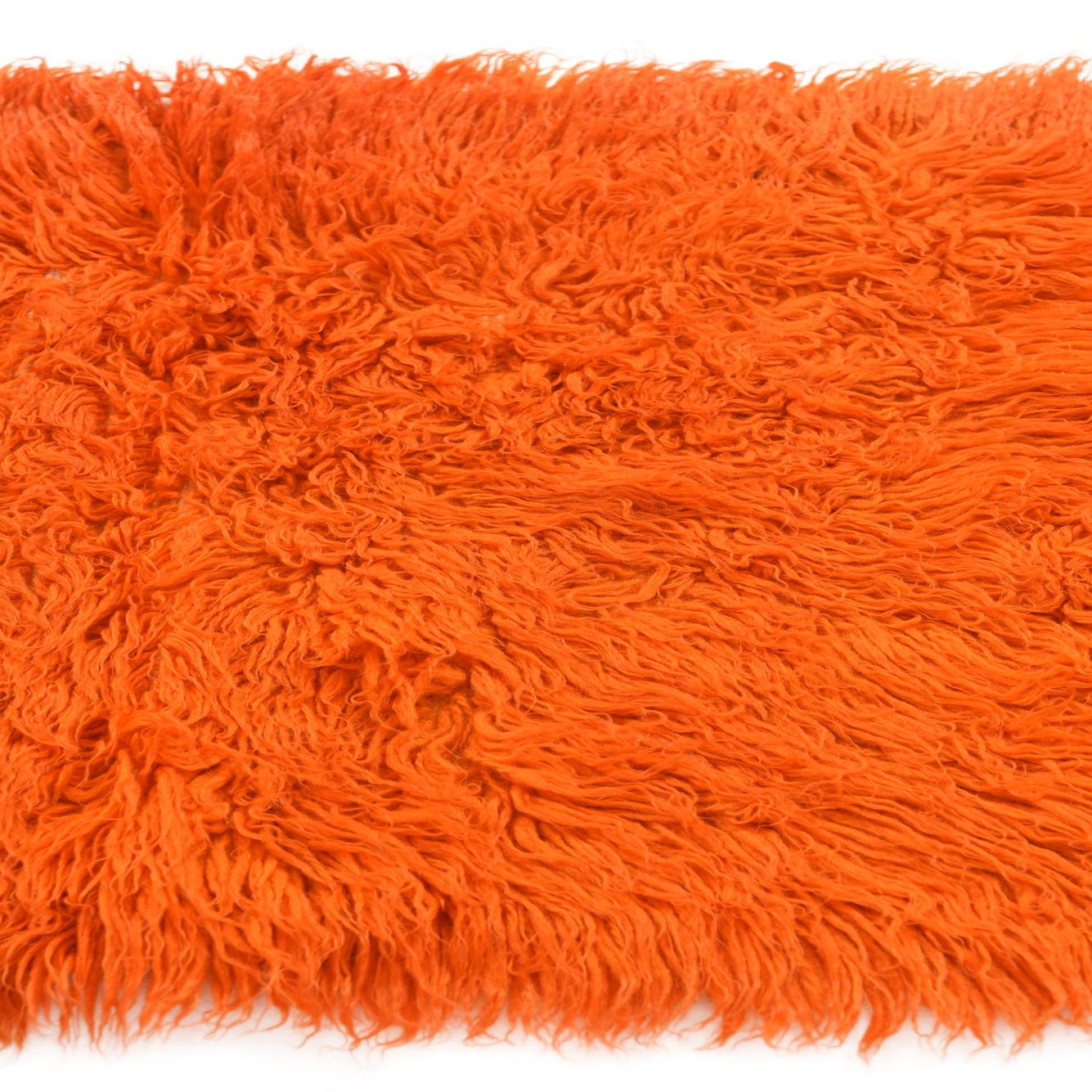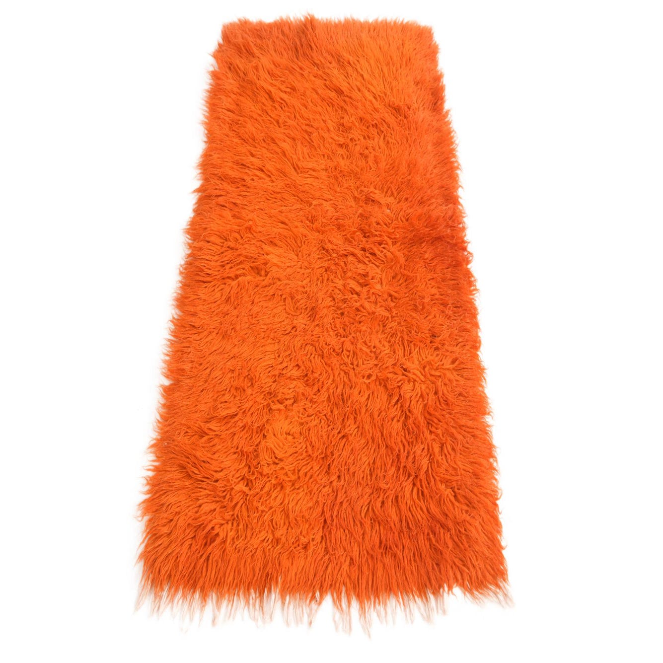 A vibrant orange 4 ft runner rug with a plush shag pile, perfect for a hallway.
