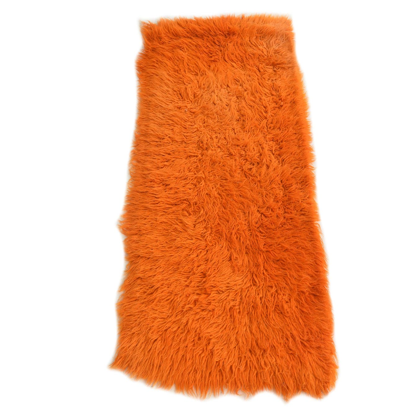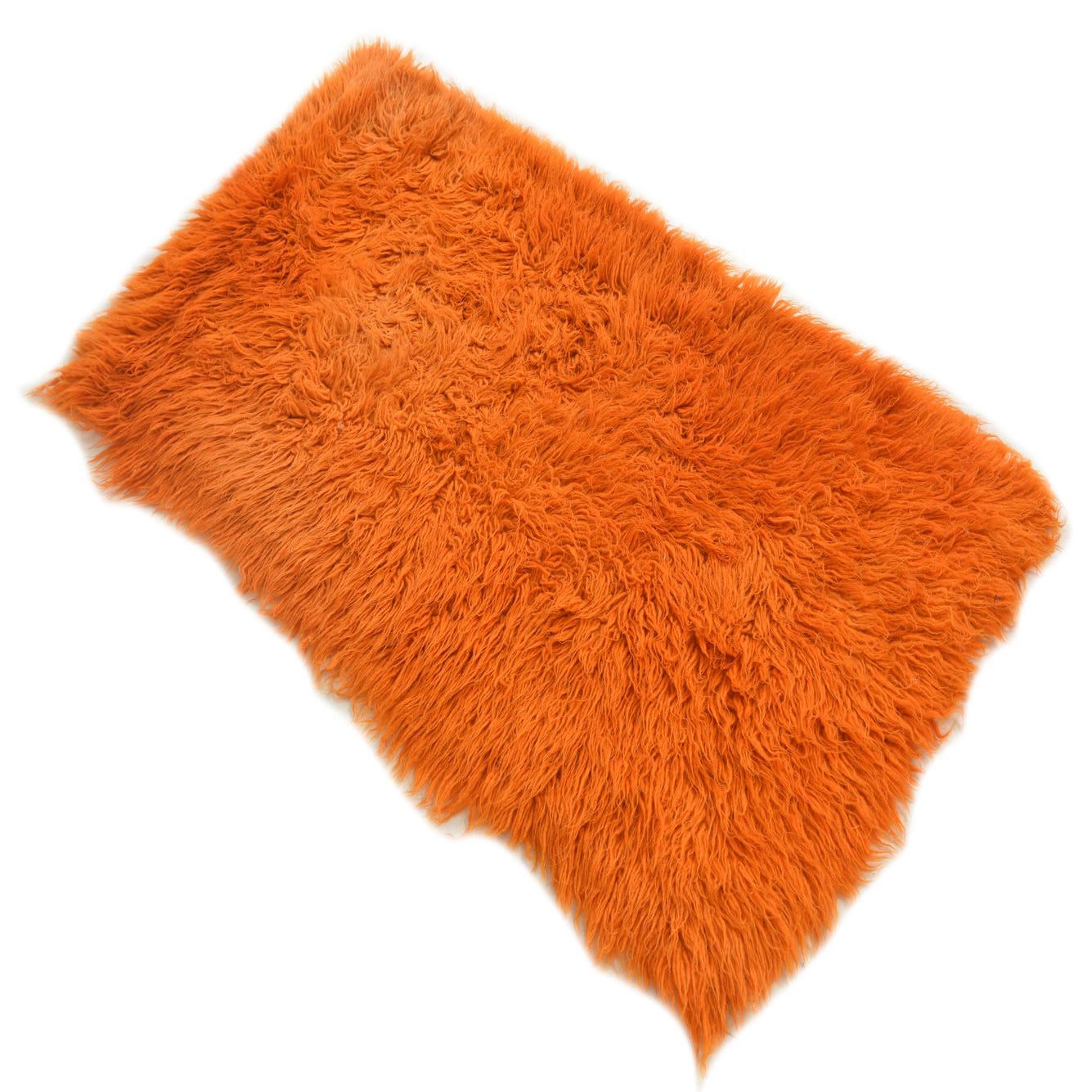 A vibrant orange 4 ft shag runner rug, handmade from wool, perfect for adding warmth to a hallway.