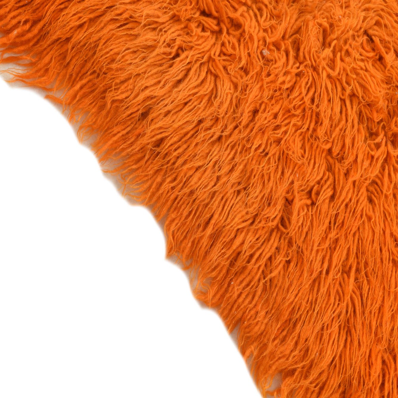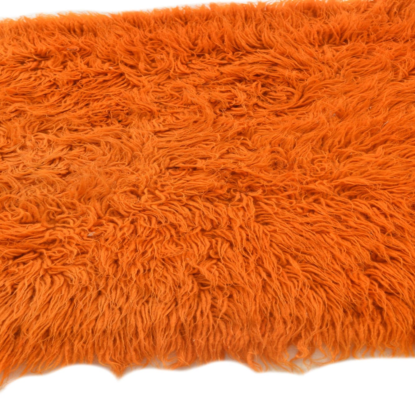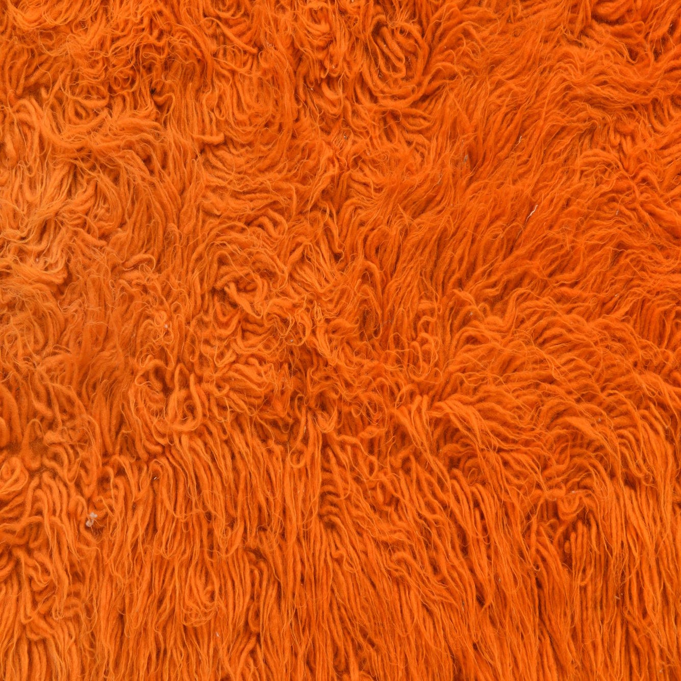 Hand-knotted, 100% wool construction creates a long, sculptural pile in a saturated orange field. The surface is made up of loose, looping wool strands that form a deep shag texture with subtle shifts in height and direction, giving the runner visual depth without a printed motif. The edges carry a slightly irregular finish that echoes the rug’s handcrafted character, and the wool pile responds beneath the hand with a springy, warm feel.