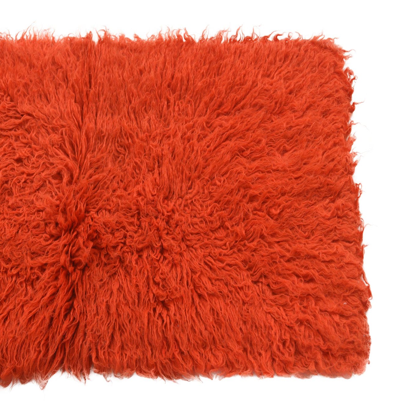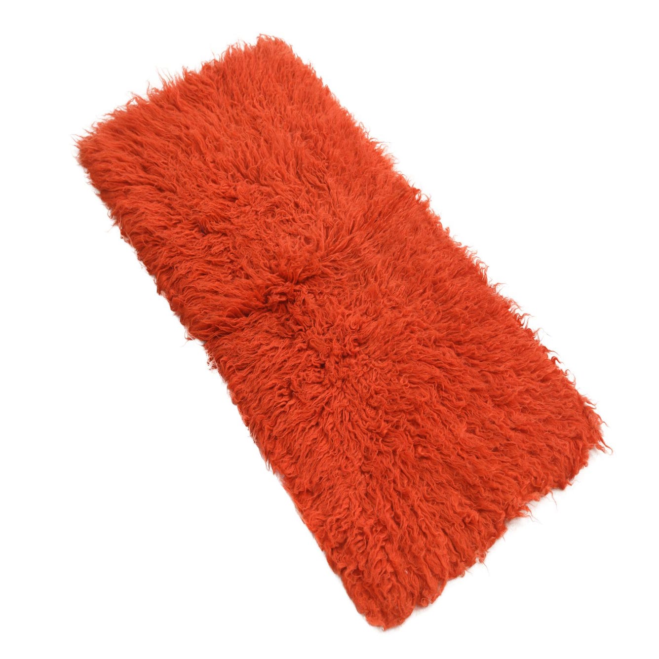 A vibrant orange shag runner rug, 4 ft long, with a plush, textured pile, perfect for a hallway.
