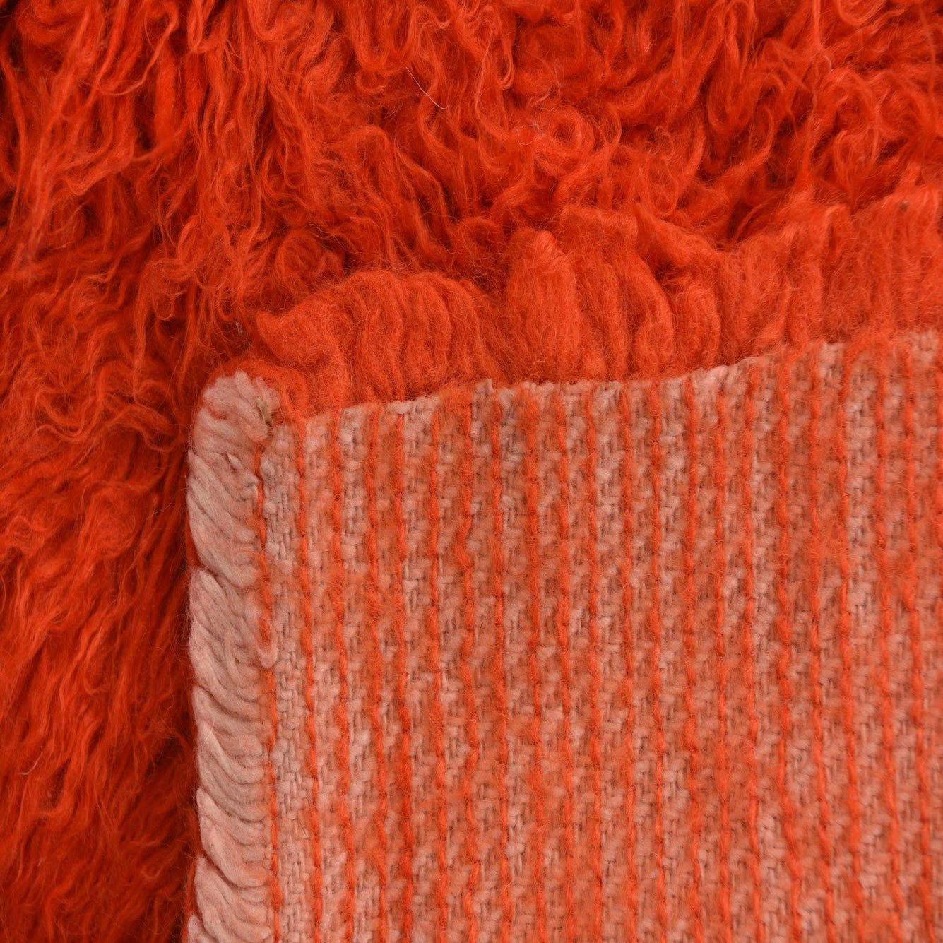 This Moroccan collection 4 Ft Runner is a vibrant addition to any space. Hand-knotted from 100% wool, it boasts a luxuriously plush texture that invites touch, providing comfort underfoot. The rug features a bold orange background, a color known for its warmth and energy. In terms of its visual appeal, this runner does not have a distinct pattern but rather showcases a freeform, shag-like pile that gives it a dynamic and organic look.
