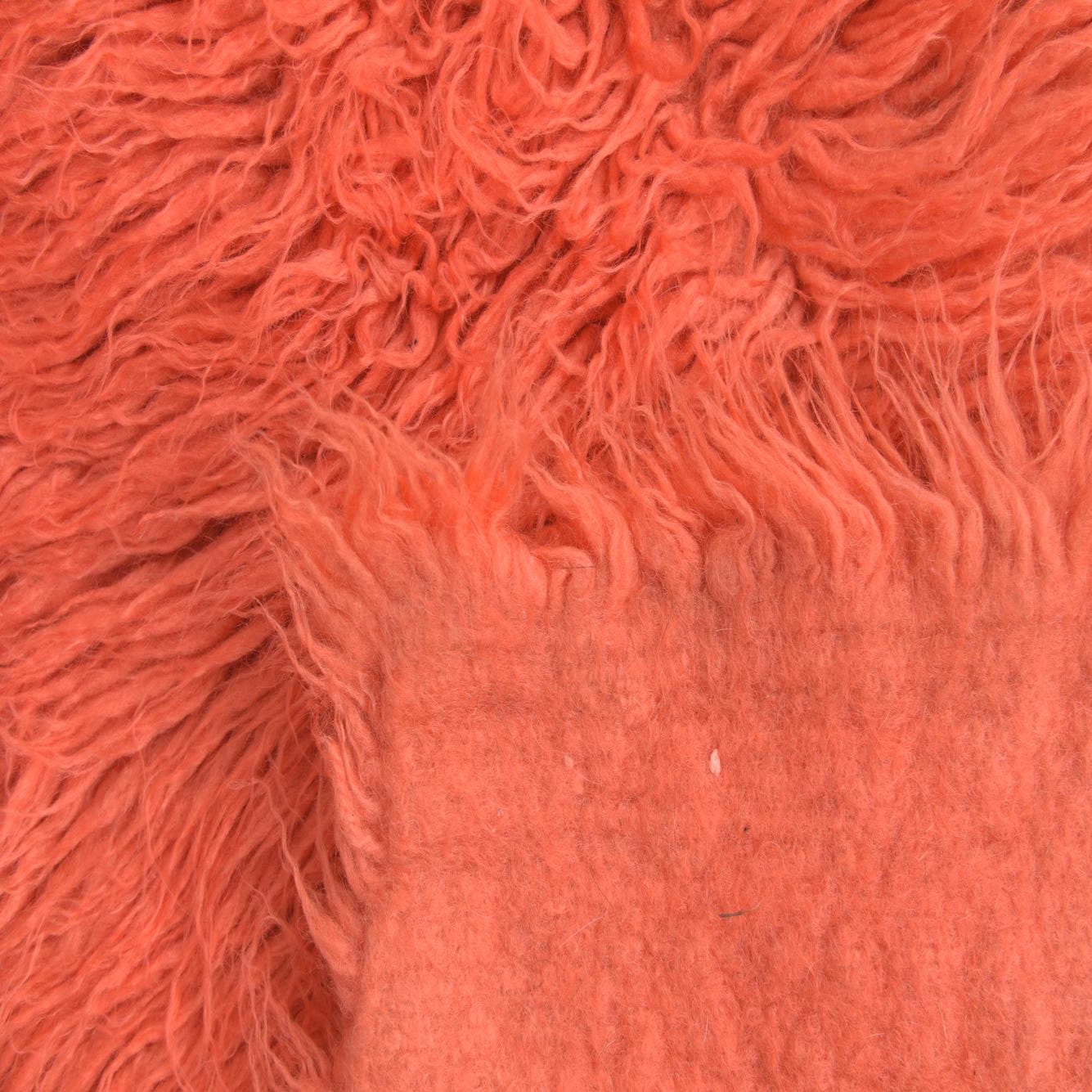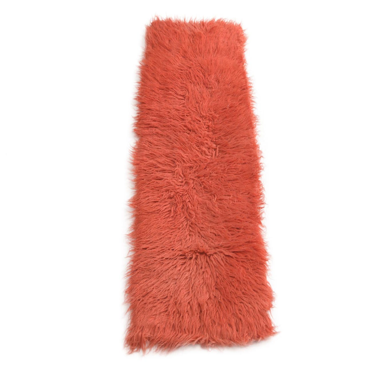 A vibrant orange 4 ft runner rug with a plush, shaggy texture, ideal for a hallway.