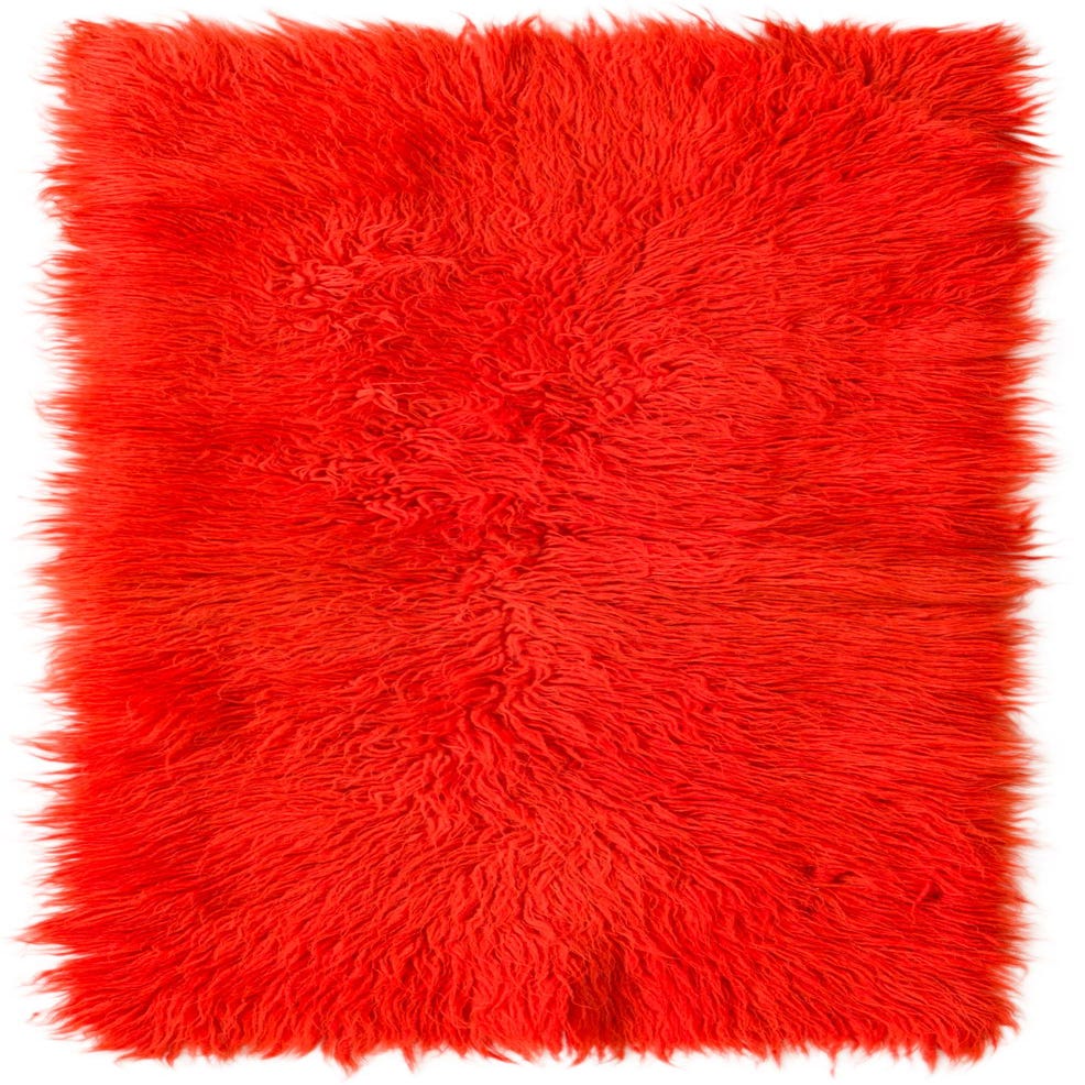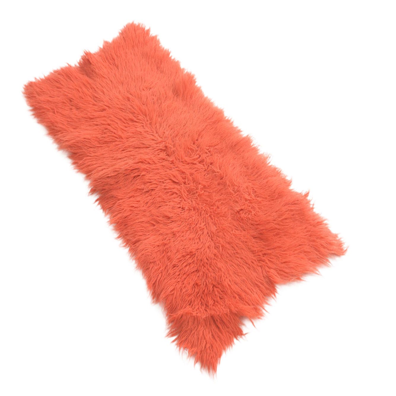 A vibrant orange 4 ft runner rug with a plush, shaggy texture, perfect for adding warmth to a hallway.