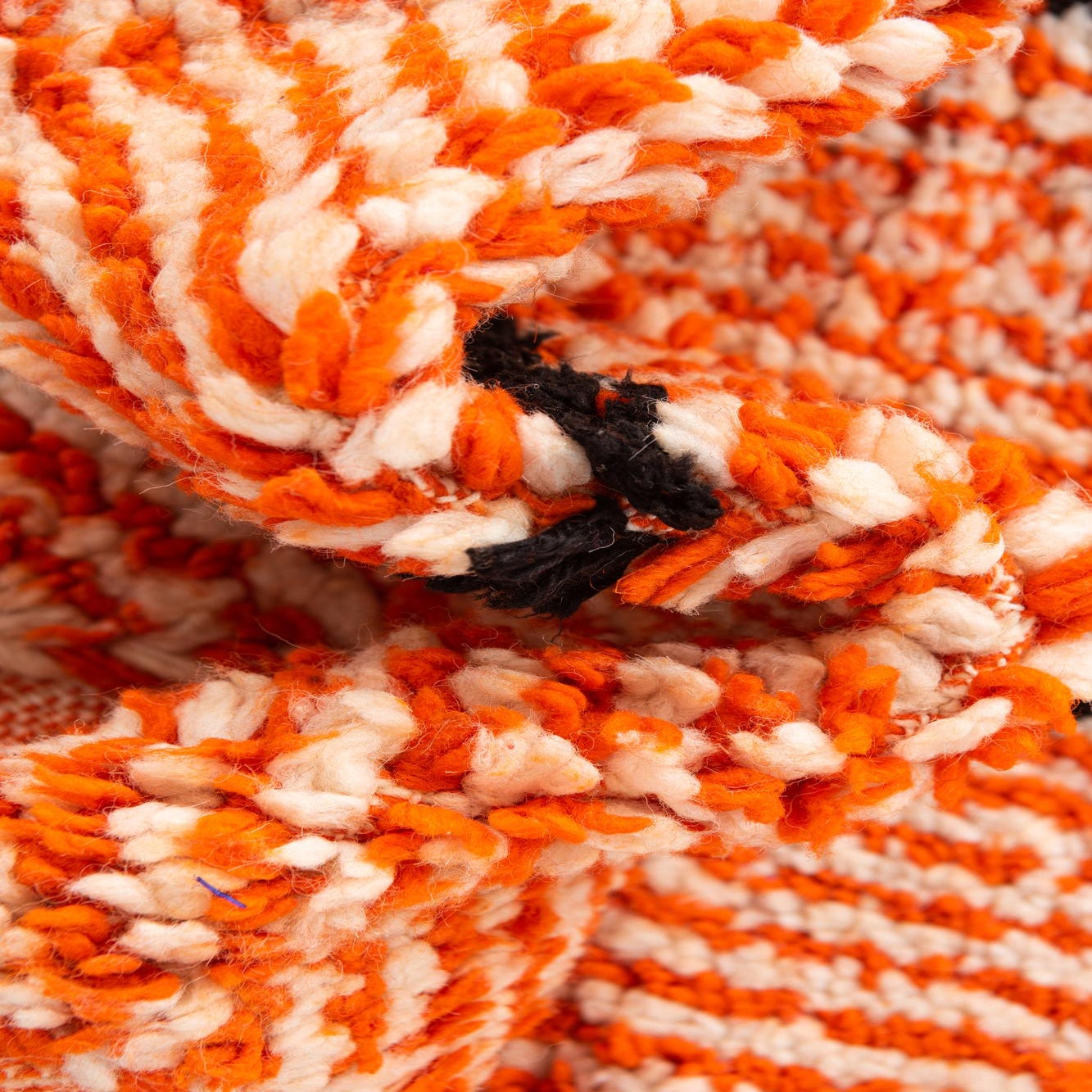 Primary color is Orange. Colors in this rug include: Orange, Black, Ivory.