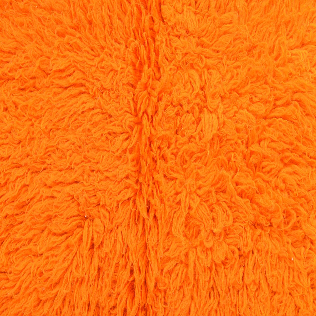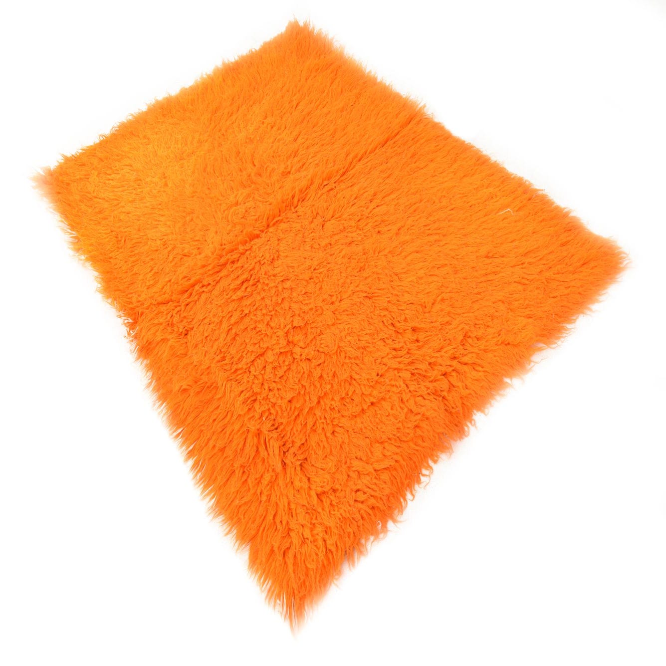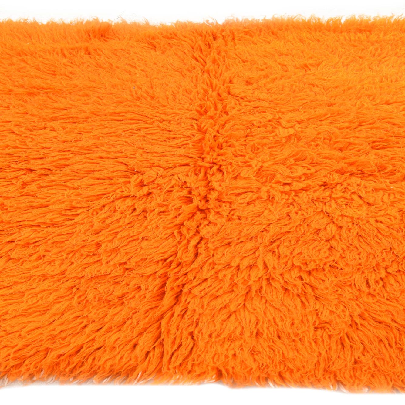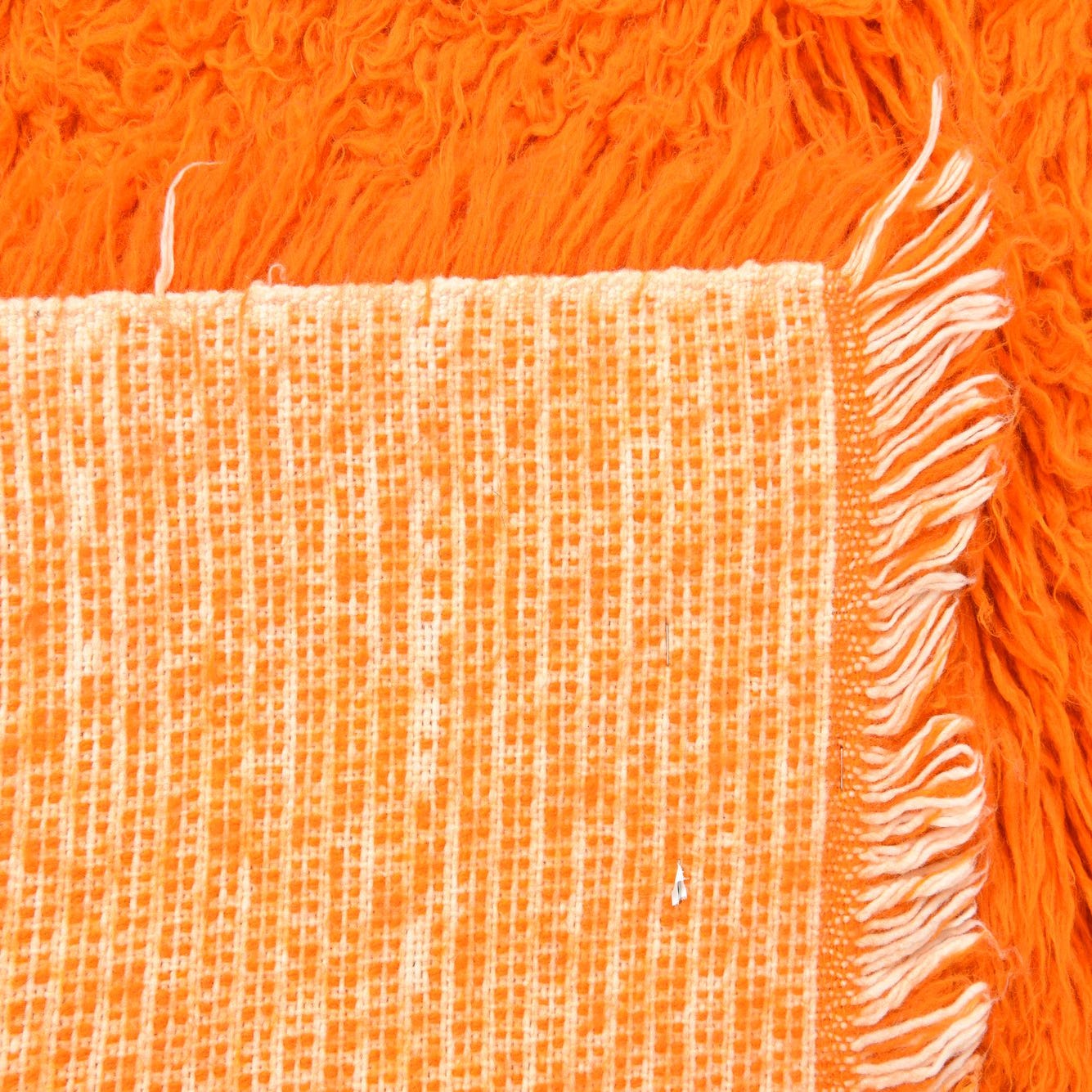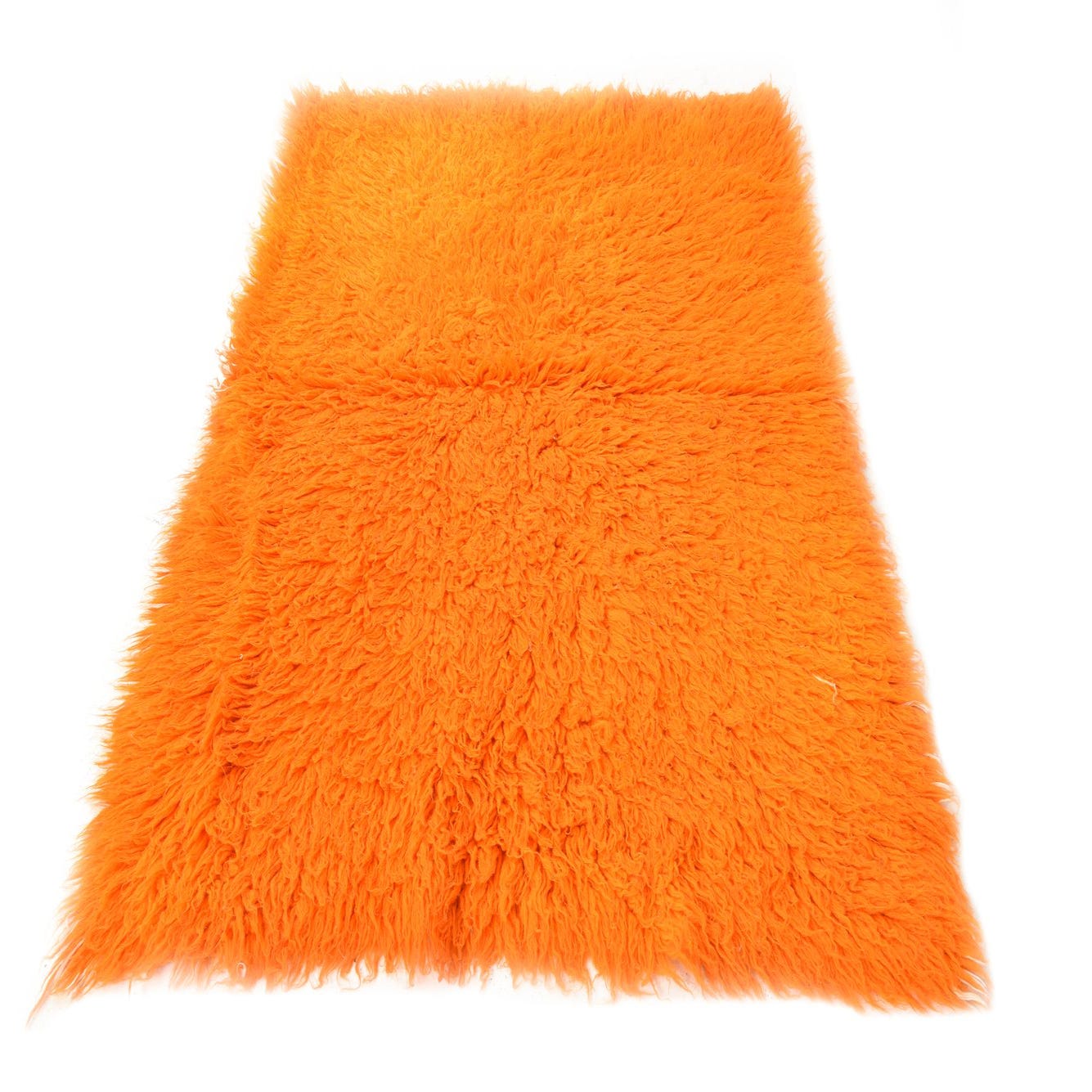 A vibrant 4x6 rectangular orange shag rug, handmade from wool, with a plush, shaggy texture.