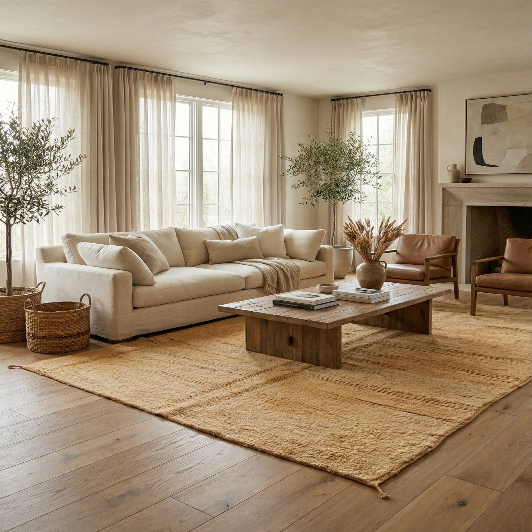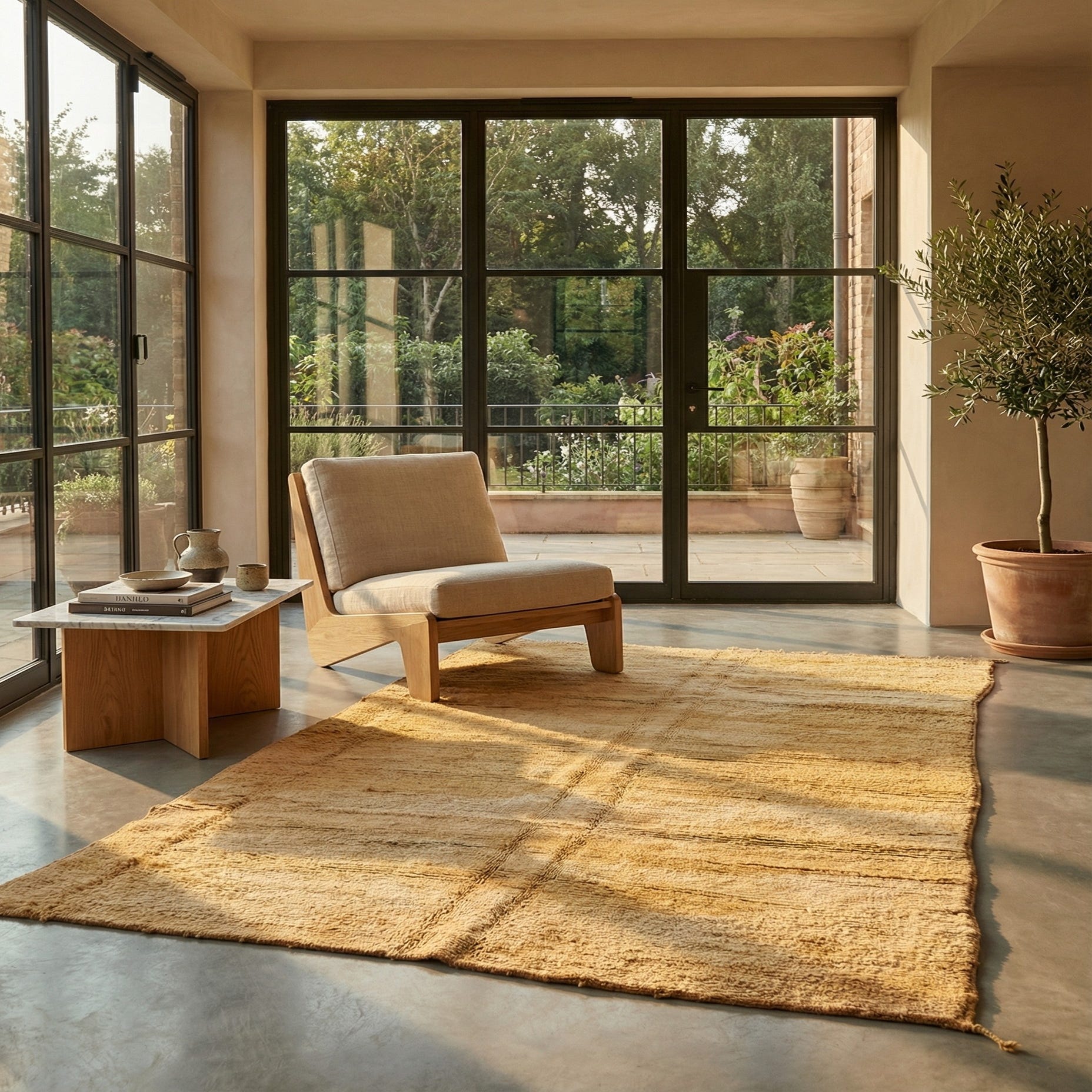 This rug pairs easily with natural woods, leather, and neutral upholstery to introduce a warm focal point without overpowering a room. It performs well as the anchor for a living room seating area, layered over hardwood floors, or placed in a cozy reading nook or bedroom to add color and texture. Its straightforward silhouette also complements mid-century modern, contemporary boho, and rustic interiors where a single warm tone brings cohesion to the scheme.