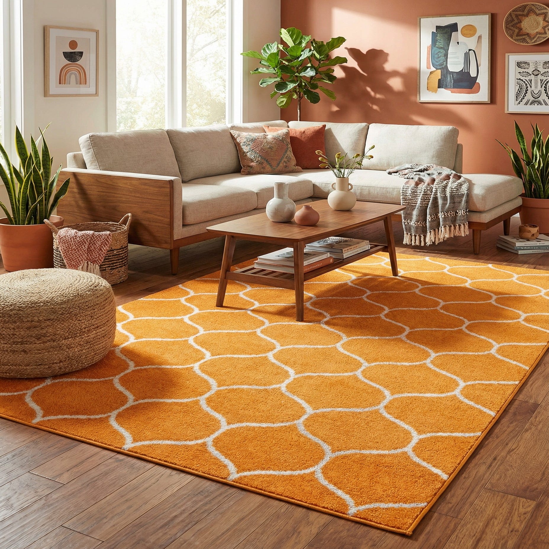 Machine-made from 100% polypropylene, this piece delivers consistent color and an even pile ideal for everyday spaces. Place it to anchor a cozy seating area, add a lively accent to a neutral living room, brighten a hallway or entry, or layer it in a child’s playroom for a cheerful touch. It pairs especially well with mid-century modern and contemporary furnishings, natural wood tones and ivory textiles for balance, or warm metallic accents to complement the orange.